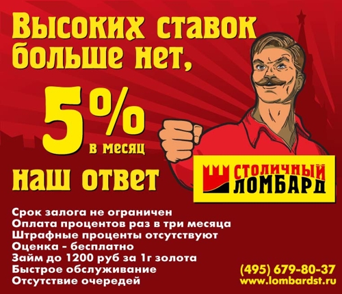Ломбарды напомнят о себе рекламой"Столичный ломбард" начал продвижение своего нового предложения в сфере предоставления займов.Агентством "Модуль Про" разработана креативная составляющая концепции продвижение: визуализация предложения, имиджи и слоган. Рекламная кампания запущена с 01 марта 2010 года на территории Москвы. Уже проявившиеся первые положительные результаты позволили продлить кампанию до конца лета. Среди задействованных каналов - реклама на транспорте: метрополитен, автобусы, троллейбусы - 1 200 рекламных мест; наружная широкоформатная реклама - более 100 рекламных мест; BTL - 700 000 единиц печатной продукции. Кроме того, в соответствии с новой рекламной концепцией, агентство выполнило наружное оформление отделений сети ломбардов и подготовило к открытию 2 новых отделения. |