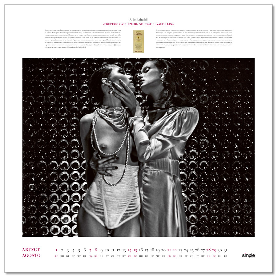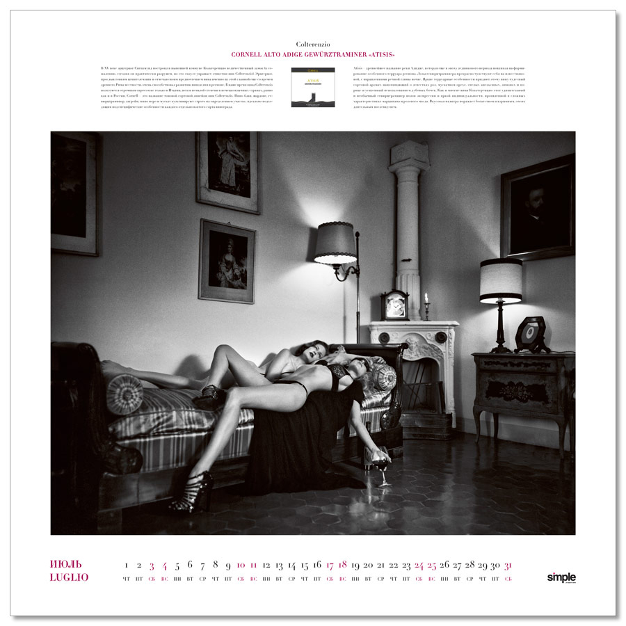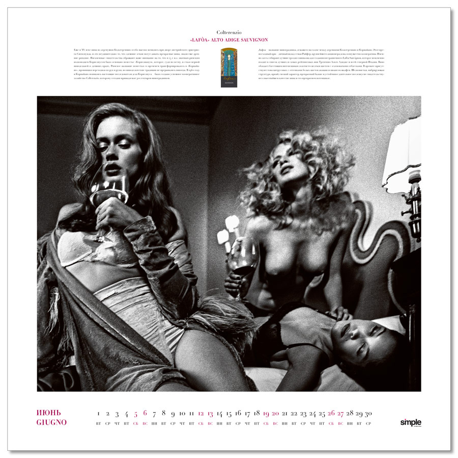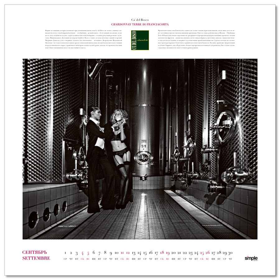 Simple создали эротический календарь для любителей винаAnis Photo Consulting и GS Brand продолжают сотрудничество с компанией Simple, импортером и дистрибьютором вина в России.Как и в прошлом году, Александра Анисимова, директор Anis Photo Consulting, организовала фотосъемку для традиционного календаря компании. Съемка проходила в Ломбардии, на Севере Италии. В прошлом году, съемка проходила в итальянском винном регионе Венето. Состав творческой группы: Фотограф: Steven Lyon, Anis Стилист: Rebecca Corbin-Murray Hair and Make-up: Louis Bester Production: Александра Анисимова, Anis Дизайн & арт-дирекшн: Georg Schmalstieg, GS brand |