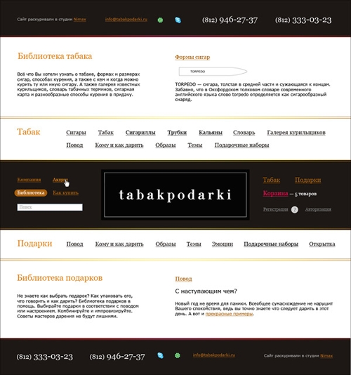 Дизайн-студия "Nimax" упаковала "Табакподарки"Петербургская сеть "Табакподарки" - это 28 магазинов, расположенных в местах с высокой проходимостью, в основном в гипермаркетах. Задача, поставленная перед студией, состояла не только в создании интернет-магазина, но и в привлечении новых категорий покупателей, не охваченных оффлайновыми точками продаж.Проведя анализ потенциальных целевых аудиторий, специалисты студии определили такую группу потребителей. Это офисные работники, не занимающиеся регулярными покупками продуктов и потому мало знакомые с предложением клиента. Для них основным критериями выбора хорошего магазина являются удобство покупки и доставки, широкий ассортимент, помощь в выборе и различные приятные бонусы. "Еще на этапе сбора информации для составления ТЗ мы попросили сотрудников компании "Табакподарки" провести анкетирование среди своих продавцов - тех, кто непосредственно общается с покупателями", - рассказывает менеджер проекта Надежда Кудреватых. "Цель опроса - выявить, что интересует людей при выборе товаров, какие вопросы или сложности возникают. Интересно, что с вопросами к продавцам обращаются 90% покупателей. Им нужны как общие сведения - какой табак крепче, как выбрать кальян, какие бывают формы трубок, - так и просто советы. Например, "что подарить мужчине 50 лет, без в/п, с ч/ю, не знаю, чем он увлекается". Решением задачи по созданию интернет-магазина и стал сайт tabakpodarki.ru. Каталог дополнен широкими возможностями подбора товаров по различным параметрам (поводы, получатель подарка, тип товара и другие), а также библиотекой знаний о табаке и подарках. Сайт также является площадкой для проведения акций и обратной связи с клиентами (например, наряду с галереей известных курильщиков существует и галерея любимых покупателей). Состав творческой группы "Nimax" Менеджер: Надежда Кудреватых Арт-директор и дизайнер: Ульяна Кожевникова Веб-технолог: Артур Кротов Прогаммист, верстальщик: Сергей Сорокин Копирайтер: Иннокентий Нестеренко |