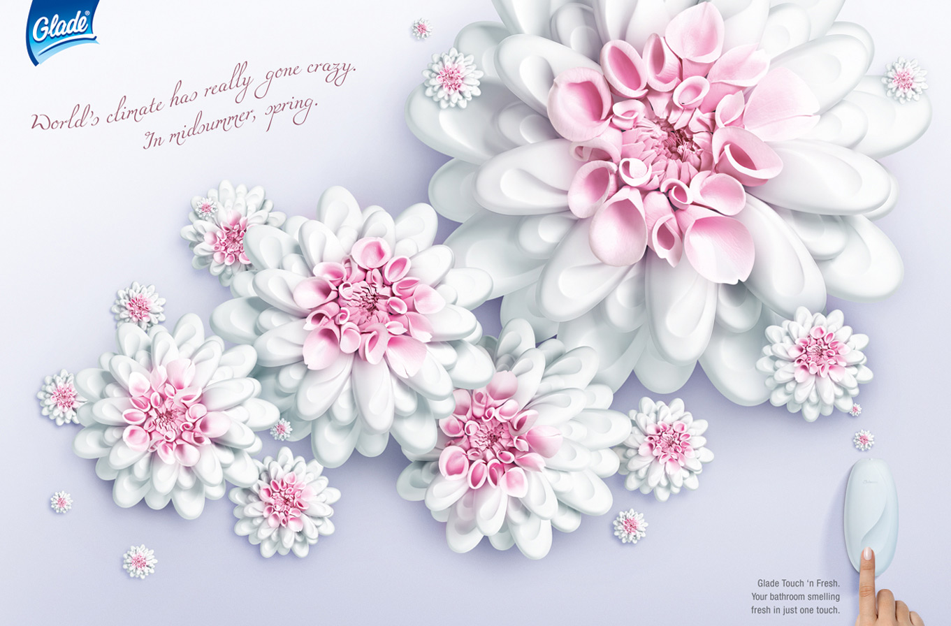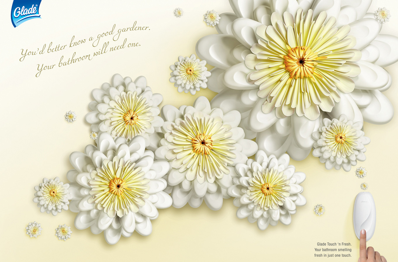 Glade превратит ванную в оранжереюРеклама освежителя воздуха от компании SC JohnsonАгентство Giovanni+Draftfcb из Рио-де-Жанейро разработало кампанию для освежителя воздуха Glade. Реклама подчеркивает, что благодаря этому освежителю, ванная комната, да и весь дом вообще, будут благоухать как настоящий цветочный сад весной. Это бразильское агентство давно работает с брендом, ранее оно создало рекламную кампанию для автомобильных освежителей воздуха, которая строилась на том, что никто не сумеет устоять от того, чтобы влезть в автомобиль, оборудованный кондиционером Glade/
