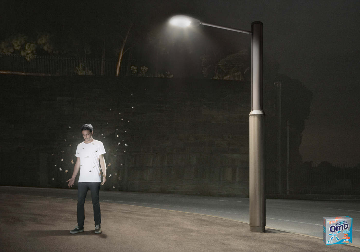 Omo заставит одежду сиять ярче фонарейРеклама отбеливателя от Naked SydneyАвстралийское агентство Naked Sydney представило новую рекламу для популярной марки отбеливателей и стиральных порошков Omo, в России более известной как Persil. Чтобы подчеркнуть насколько хорошо работает это средство, рекламисты изобразили на принте молодого человека в ослепительной белой футболке, которая своим сиянием привлекает насекомых, и те кружат вокруг парня, вместо того, чтоб как обычно делать это возле фонаря. Состав творческой группы Advertising Agency: Naked Sydney, Australia Creative Directors: Sesh Moodley, Paul Swann Art Directors: Sesh Moodley, Kelly O'Rouke Copywriters: Sesh Moodley, Paul Swann Photographer: Chris Barlow |