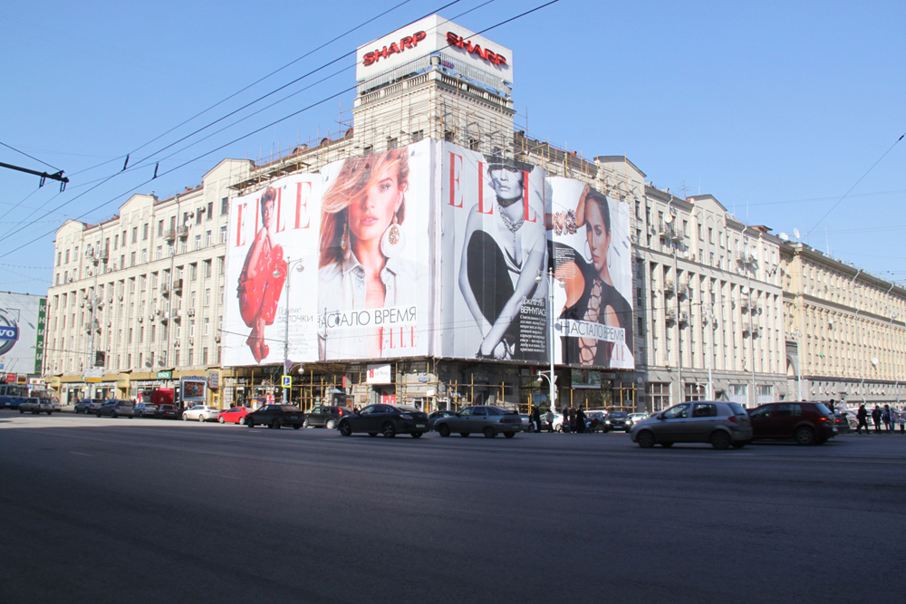 ELLE - имиджевая реклама в самом сердце МосквыКомпаниями MAER GROUP, STUFF MEDIA и СПЕЦПРОЕКТ реализован крупный нестандартный проект в центре Москвы для клиента ELLE. Для размещения было использовано рекламное место, по адресу Тверская, ул., д.8. Подобный проект размещен в России впервые. Необычность его состоит в том, что на фасаде размещен разворот журнала, точно имитирующий его реальный объем. Сложность реализации данного проекта заключалась в том, чтобы максимально реалистично передать визуальный образ развернутого журнала, в том числе изгиб страниц.Данное место имеет высокие показатели эффективности для трафиков автомобилей и пешеходов. В данном эксклюзивном проекте удалось добиться слаженного механизма работы между креативным агентством и технологами, которые смогли воплотить в реальность идею клиента с использованием для размещения самого журнала в развороте. Изменение геометрии строительных лесов и надстройка объемного каркаса для достижения необходимой формы рекламного плаката на практике были применены в России впервые. Так же, для рекламоносителя было использовано усиленное освещение с дополнительным эффектом объема в вечернее и ночное время суток. Напомним, что летом 2009 года журнал ELLE провозгласил в России начало Модной Революции, объявляя тем самым о серьёзных и решительных изменениях в журнале. В поддержку реформ, произведенных в ELLE, в ноябре 2009 года в Москве стартовала масштабная рекламная кампания "Настало Время ELLE", которая получила своё продолжение во всех крупных городах России в 2010 году. Нестандартное размещение становится все более распространенной практикой для крупных клиентов. При качественном и оперативном исполнении подобные проекты представляют огромный интерес благодаря своей уникальности и эффективной форме подачи рекламы. MAER GROUP - владелец "топовых" брандмауэров в г. Екатеринбурге, Челябинске и других городах России. В 2009 компанией MAER GROUP реализован самый крупный нестандартный проект в России для клиента Carte Noire. Брандмауэр общей площадью 10 500 кв.м. размещен на недостроенном небоскребе в центре Екатеринбурга, для фотоотчетов использовался вертолет. В собственности компании более 400 брандмауэров. STUFF MEDIA - является специализированным брокером и эксклюзивным селлером ряда рекламных возможностей в сегменте имиджевой рекламы на территориии России. STUFF MEDIA имеет большой опыт реализации спец.проектов на рекламоносителях формата: брандмауэры/сетки. СПЕЦПРОЕКТ - является владельцем рекламных конструкций, оператор ТОП 3, одна из немногих на рекламном рынке, предлагающая размещение широкоформатной рекламной информации на фасадах зданий в центральном округе г. Москвы. Более 10-ти лет работы позволяют предложить высочайший уровень сервиса в подборе и реализации специальных проектов на нестандартных конструкциях в сфере наружной рекламы. |