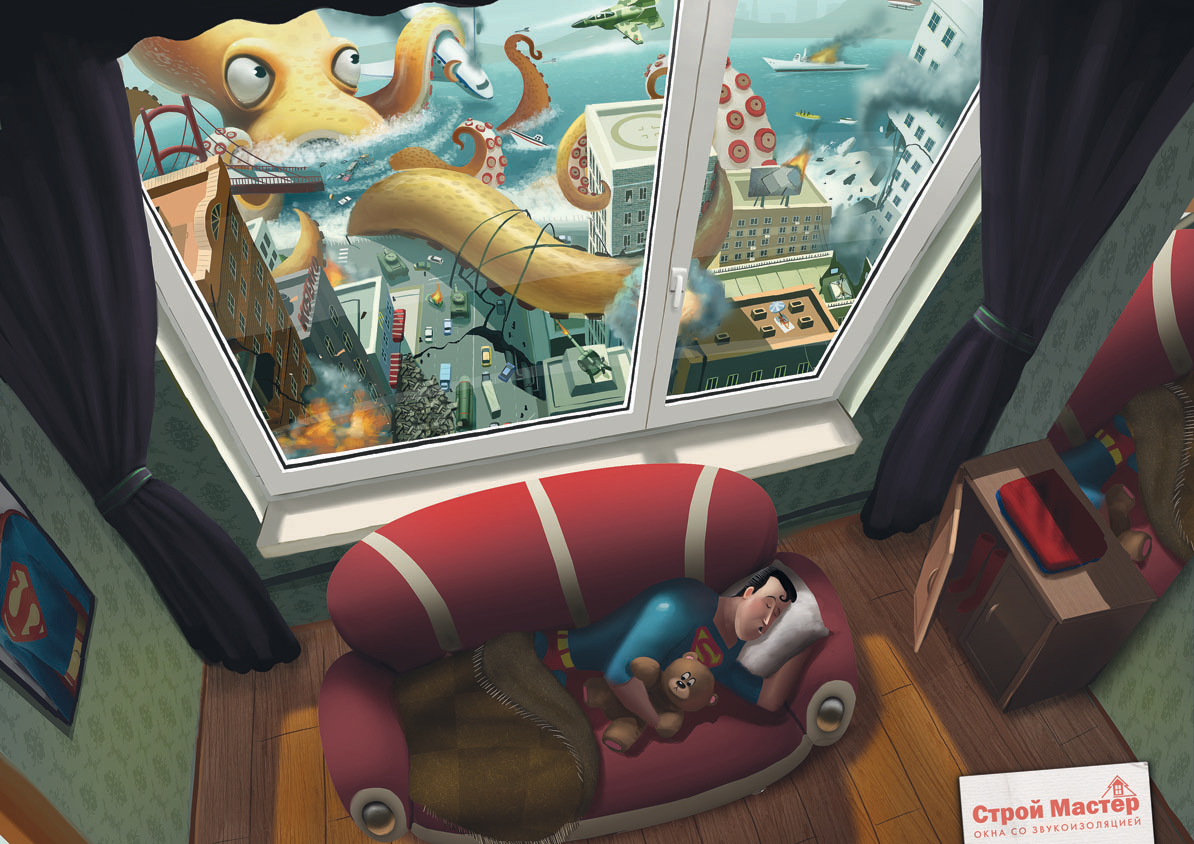 BBDO Moscow: и пусть весь мир подождет супергероевВ BBDO завершили проект для компании "Строй Мастер", которая занимается производством пластиковых окон и дверей.Печатная рекламная кампания показывает, как надежна звукоизоляция окон - даже супергерои не слышат, что творится на улице.