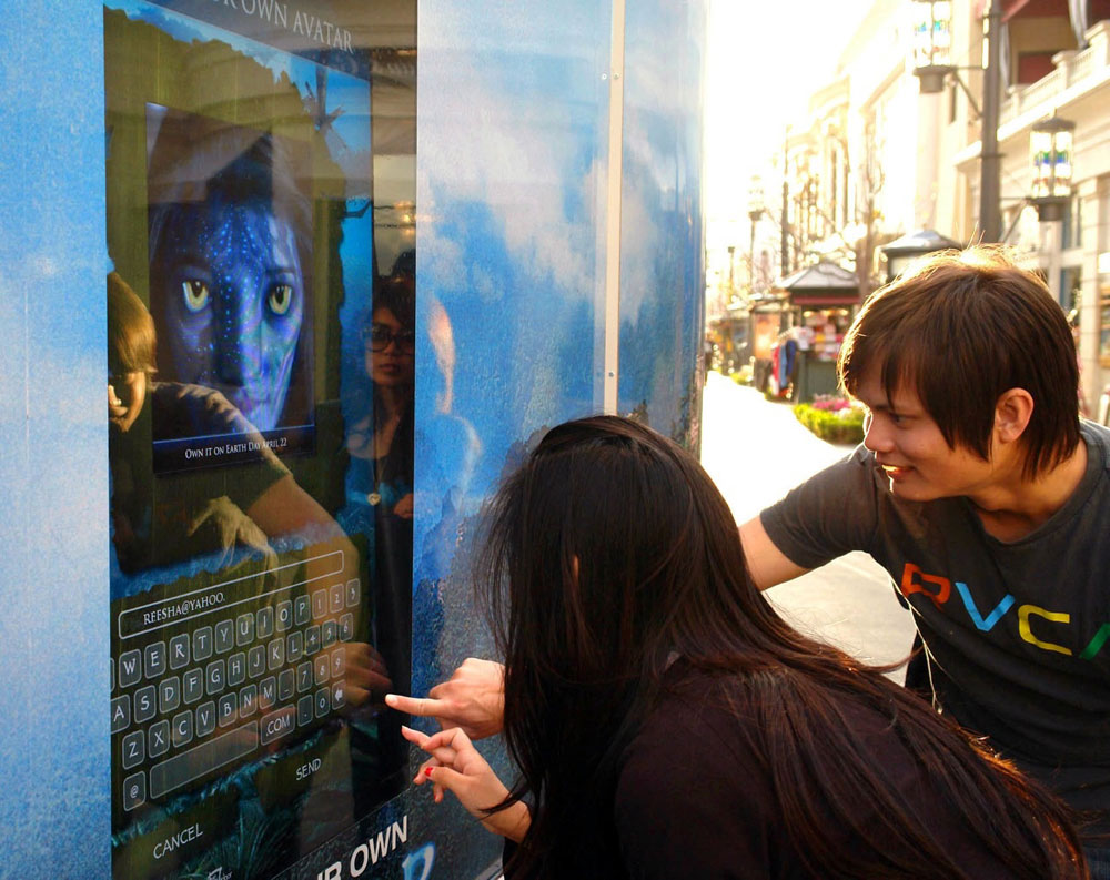 В течение следующего месяца прохожие на бульваре Grove в Лос-Анджелесе будут прогуливаться возле огромных цифровых дисплеев с тремя экранами, которые будут фиксировать их изображения, преобразовывать образы людей в Na'vi (жителей Пандоры), и посылать по электронной почте им вместе с информацией о том, где можно приобрести фильм.