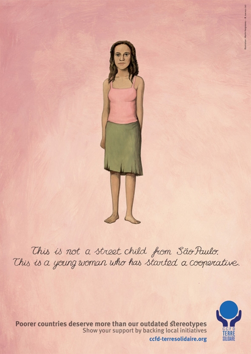 Рекламная кампания против стереотипов обществаФранцузская организация CCFD-Terre Solidaire и борется со стереотипами восприятия бедных странПервая французская некоммерческая гуманитарная организация CCFD-Terre Solidaire и парижское агентство Euro RSCG C&O запустили глобальную кампанию, направленную против стереотипного восприятия менее развитых и бедных стран. Кампания предлагает иначе взглянуть на жителей этих стран и увидеть в них не бедняков без надежд, а успешных людей, добивающихся своего в жизни. Создатели принтов были вдохновлены работами французского художника-сюрреалиста Рене Магритта: ![]() Это не бездомный ребенок из Сан-Паулу.