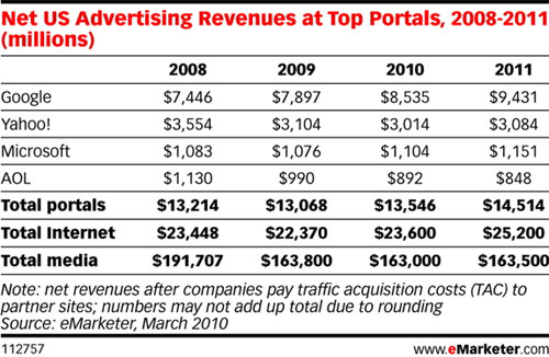 Сайты Google, Yahoo! и Microsoft размещают все больше рекламыРекламодатели по-прежнему тратят значительные средства на Интернет-ресурсы с массовой аудиториейПродолжительные рекламные кампании на порталах, возможно, уже не столь модны, отмечают аналитики, но все также весьма эффективны из-за количества привлекаемого трафика на сайты рекламодателей. Об этом свидетельствую данные eMarketer. Даже при том, что многие порталы имеют тенденцию к децентрализации, они все еще ценны для сетевых рекламодателей. Например, специалисты по брендингу, которые стремятся расходовать бюджеты на достижимые цели, продолжают тратить значительные средства на такие сайты. Большие порталы дают специалистам по маркетингу возможность достигнуть массовой аудитории быстрее, чем используя рекламные сети, констатируют исследователи. Участники рынка отмечают, что глобальные порталы привлекли более 13 миллиардов долларов рекламы в прошлом году. А это больше половины от общего количества (23,5 миллиардов долларов) от заработка всего Интернета, отмечает Adweek.com. |