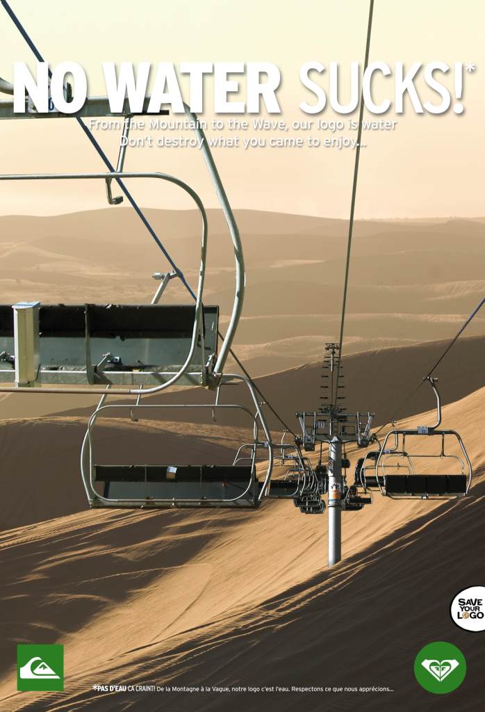 Roxy & Quiksilver продолжили проект No Water SucksВ Европе проходит Международный проект No Water Sucks компании Roxy & Quiksilver.В его рамках в европейских странах размещена серия фото-работ, призывающих беречь водные ресурсы. В креативных инсталляциях вместо привычного океана - песчаное море, вместо заснеженных гор - пустыня. Именно так, по мнению креаторов, могут выглядеть излюбленные курорты в Альпах или Бали, если не беречь водные ресурсы. В рамках этой кампании Roxy & Quiksilver представили серию лимитированных продуктов из экологически-чистых материалов. До конца апреля каждый желающий может приобрести одежду "зеленой линии" в любом магазине Roxy & Quiksilver, в том числе и России, в поддержку экологической программы. Прибыль с продаж будет перечислена в международный фонд защиты водных ресурсов. |
