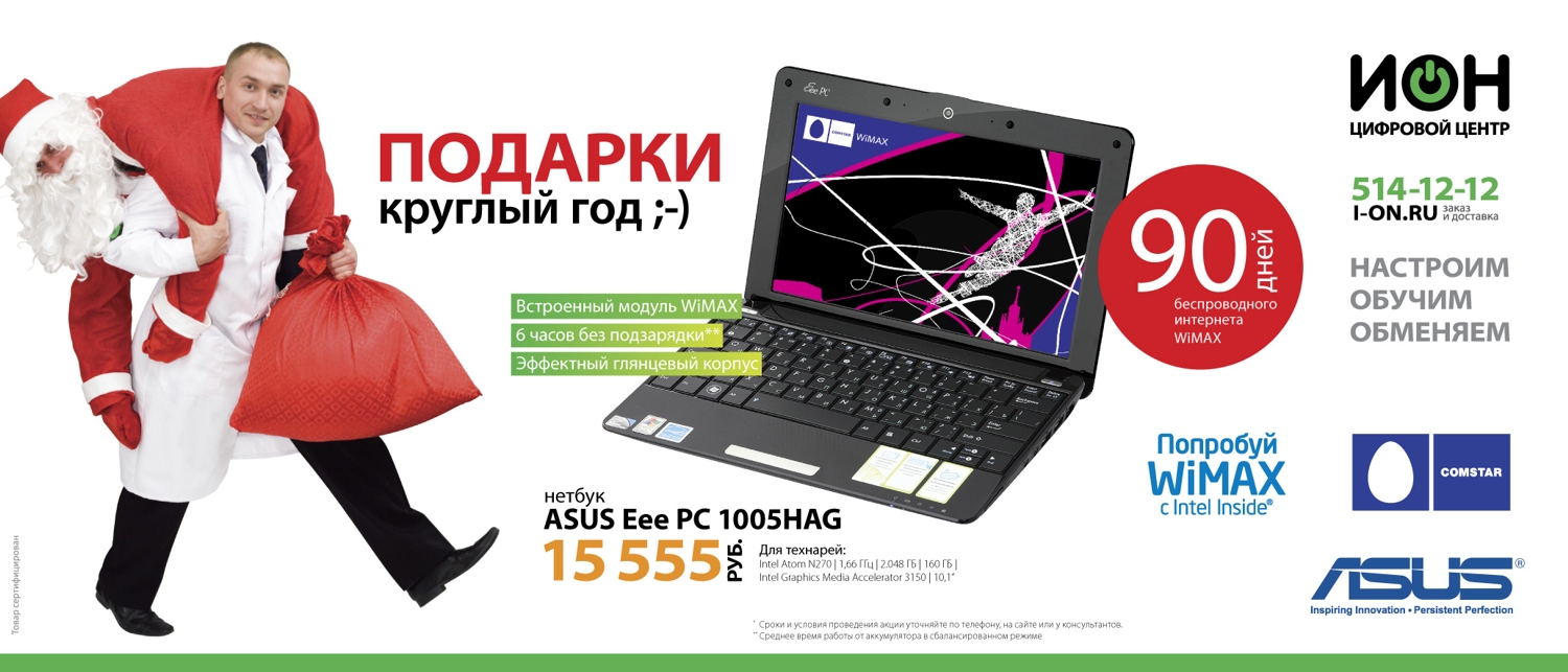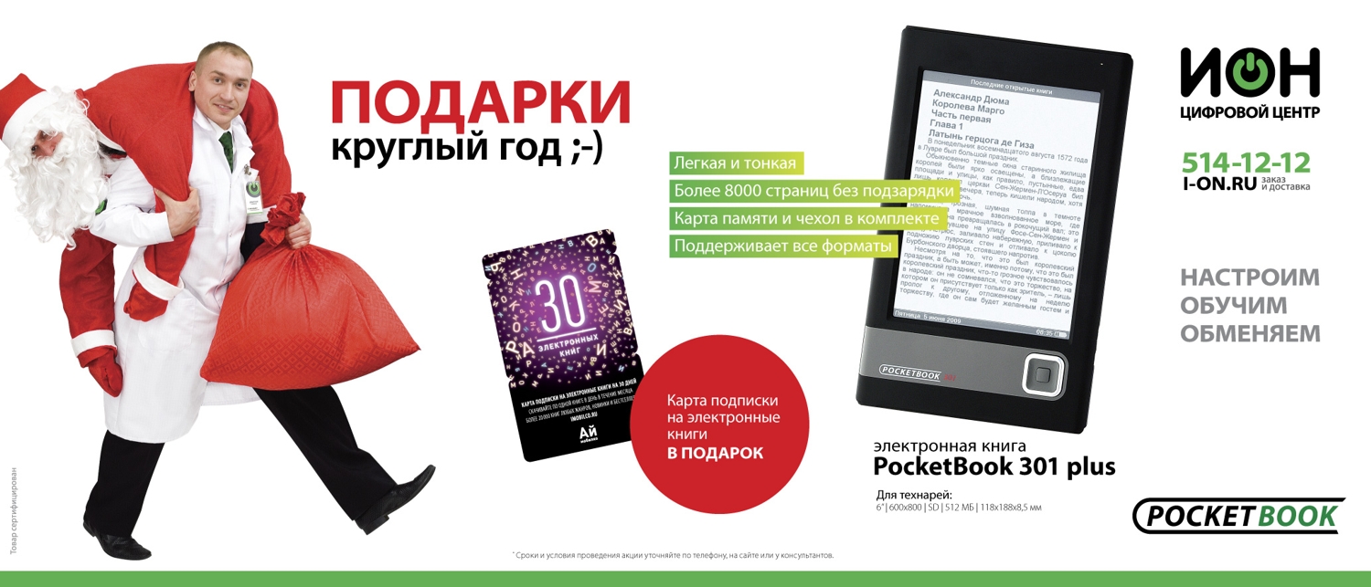 В "Ионе" начался Новый годСеть магазинов цифровой техники "Ион" запустила рекламную кампанию в поддержку акции "Подарки круглый год". Главная идея такова: Специалист цифрового центра ИОН силой возвращает Деда Мороза в Москву для того, чтобы вернуть новогодние скидки и подарки покупателям ИОН. Рекламная кампания, целевой аудиторий которой считаются люди среднего достатка и возраста, пройдет до 18 июня.