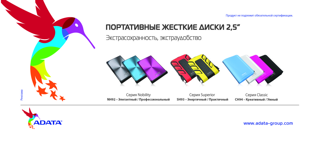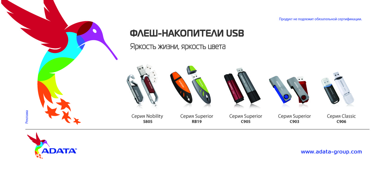 Тайваньский производитель флэшек начинает имиджевую кампанию в РоссииТайваньская компания A-DATA Technology Co., Ltd., производитель модулей DRAM и устройств хранения информации на флэш-памяти, запустила в России рекламную кампанию, направленную на повышение узнаваемости бренда и реализацию продукции в период с 20 апреля до конца июня. Рекламная кампания A-DATA будет использовать носители сразу нескольких форматов: интернет, специализированная пресса, бизнес-центры и метро, POS-материалы. В дополнение планируется открыть сайт A-DATA club."Приоритетной задачей A-DATA на данном этапе является выход на новый уровень взаимоотношений с целевой аудиторией. Мы предлагаем потребителям простые и удобные решения в области высоких технологий", - комментирует Глава Представительства компании A-DATA на территории СНГ и Европы Сон Су Ро (Sung Soo Roh). - Новая рекламная кампания направлена на повышение узнаваемости и лояльности к бренду, а также является мощным конкурентным преимуществом. Это важный этап для компании A-DATA, которая стремится занять лидирующие позиции, как на российском, так и на мировом рынке". Концепция рекламной кампании была разработана медийным агентством Strategist Media и DDD-агентством FCBi, которые входят в группу Media Arts. Основными задачами рекламной кампании является максимальный контакт с потребителем на этапе покупки, улучшение видимости бренда в точках продаж и построение отношений с клиентом после покупки. В течение ближайшего месяца будет размещена реклама в специализированной прессе, IT и игровых изданиях, отвечающих тематике и целевой аудитории A-DATA. Одновременно в бизнес-центрах класса "А" в наиболее удачных по охвату аудитории месторасположениях Москвы и Санкт-Петербурга появятся динамичные дисплеи и лайт-боксы. Изображенная на продукции птица колибри как элемент бренда A-DATA привлечет внимание и порадует даже серьезных покупателей! Также акцент будет сделан на рекламе в метро, которая подразумевает размещение стикеров на дверях вагонов четырех линий Московского и одной линии Санкт-Петербургского метрополитена. На этапе запуска рекламной кампании планируется открыть развлекательный портал A-DATA club. www.adataclub.ru - это уникальный шанс для потребителя первым увидеть новые модели, вступить в интернет-сообщество A-DATA для обмена мнениями, фото- и видео роликами. На сайте клуба также планируется открыть чат и игры. Это прекрасная возможность завести новых друзей и просто повеселиться! Во втором квартале 2010 года A-DATA планирует провести совместные рекламные акции с компанией GIGABYTE. Руководство компаний стремится увеличить осведомленность общественности о продуктах и новых технологиях A-DATA и GIGABYTE, а также повысить уровень продаж в розничных и оптовых сетях. Маркетинговые активности A-DATA способствуют формированию положительного образа компании в глазах общественности и выявляют основные ценности бренда, такие как индивидуальность, красочность и постоянное стремление к технологическому развитию. Целью маркетинговых акций является как повышение узнаваемости бренда, так и консолидация отношений с аудиторией оверлокеров и геймеров на форумах и в блогах, а также установление контактов с лидерами отрасли. |