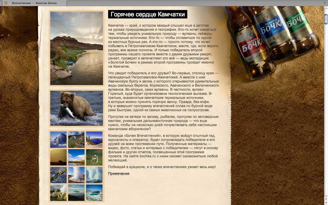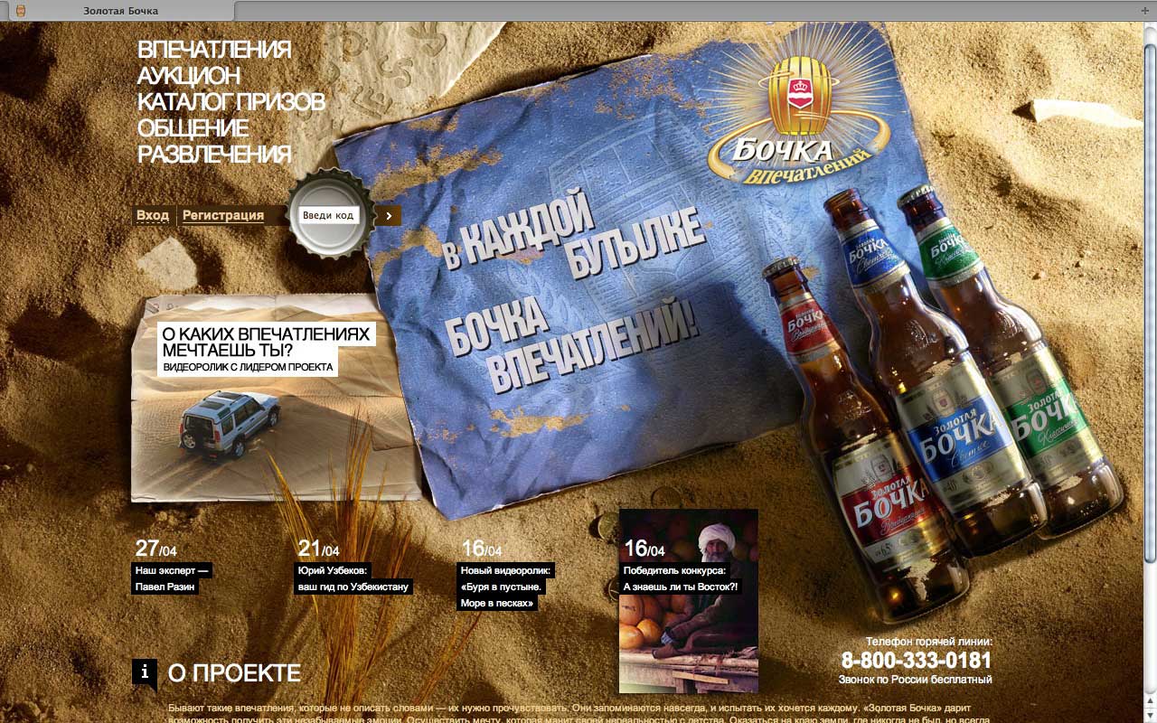 Еще в марте был запущен сайт bochka.ru. На нем анонсируется акция "Бочка впечатлений" и рассказываются ее подробности.