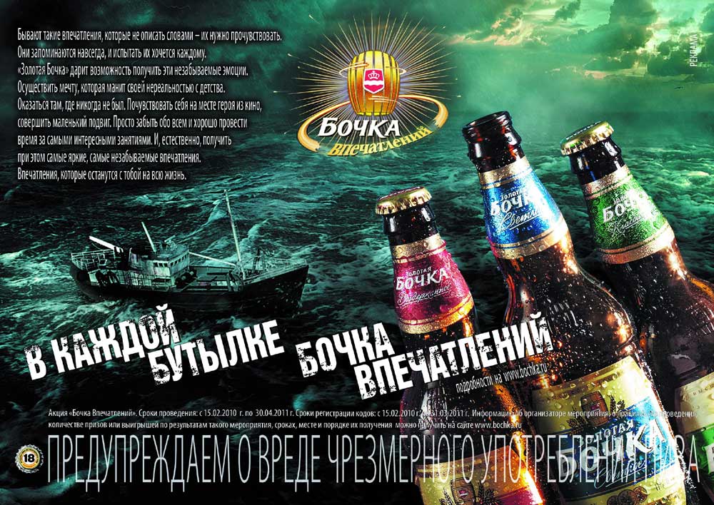 В апреле стартовала широкомасштабная интегрированная кампания «Бочка Впечатлений». Кампания основана на коммуникационной платформе, созданной агентством JWT Russia для пивного бренда «Золотая Бочка». Непосредственную реализацию кампании осуществляет команда агентств JWT Russia, New Point, Grape, PRP Group - A Weber Shandwick Affiliate Company, Maxus и Mediaselection.