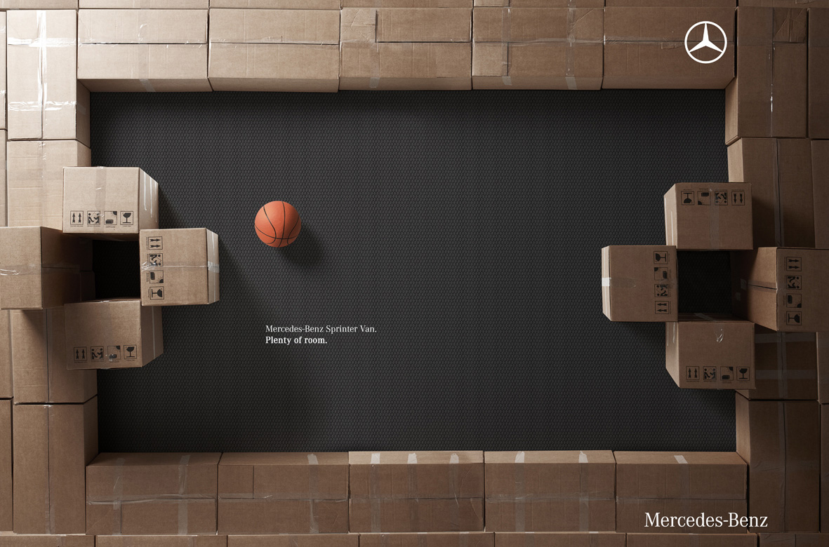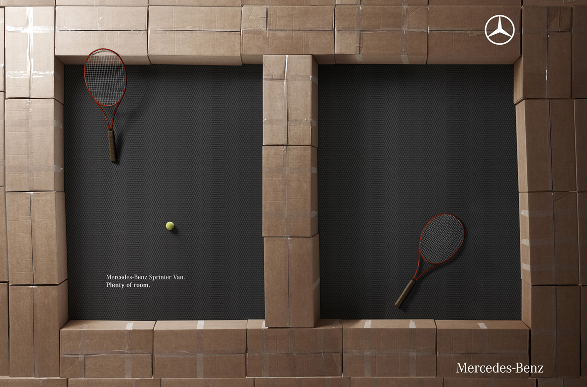 Mercedes рекламирует авто, просторное как комнатаКампания для фургона Mercedes-Benz Sprinter VanMercedes-Benz Sprinter Van - это вместительный фургон, который подходит для любых перевозок. Агентство Grey Brazil решило подчеркнуть вместительность этого автомобиля, изобразив, что внутри него можно вполне играть в теннис или футбол, соорудив игровую площадку из коробок, которые в нем перевозят. Реклама проходит под слоганом "Mercedes-Benz Sprinter Van. Простор комнаты". Агентство Euro RSCG Bogota в свою очередь подчеркивало вместимость китайских фургонов DFM Vans, разместив внутри слона и кита. Состав творческой группы Advertising Agency: Grey Brazil Creative Director: Guy Costa Art Director: Lucas Heck Copywriter: Rafael Artissian Photographer: Marlos Bakker |