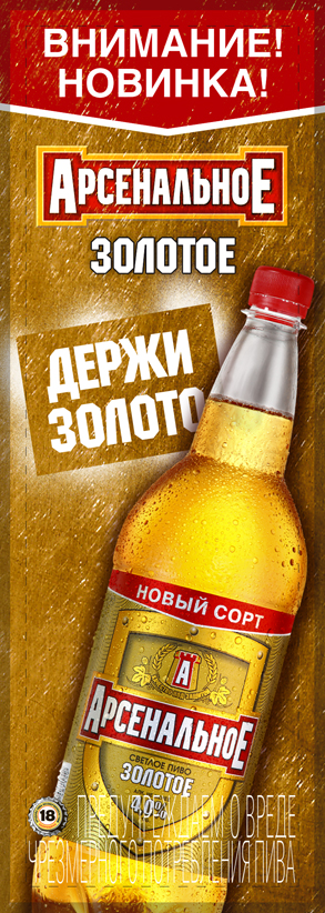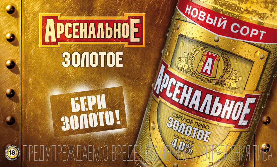 Y&R награждает мужчин "Арсенальным золотым"В мае стартовала кампания в поддержку нового сорта знаменитого бренда "Арсенальное" - "Арсенальное Золотое".Пиво "Арсенальное Золотое" было выпущено в феврале 2010 года специально ко Дню Защитника Отечества для продаж в Центральном регионе. Название для нового сорта было выбрано не случайно, ведь золото - это главная награда для победителя. Именно эта идея легла в основу коммуникационной стратегии. Тёмные подземные коридоры, огромный сейф, немыслимые сокровища - в захватывающем ролике искатели приключений преодолевают все препятствия на пути к Золотому Арсеналу и получают законное вознаграждение - пиво для настоящих победителей "Арсенальное Золотое". Ролик о героическом захвате сокровищ Золотого Арсенала хронометражем 20 секунд будет транслироваться с мая по июнь по основным каналам Центрального региона России. Телевизионная кампания будет поддержана наружной рекламой (сити-форматы), рекламой в транспорте и POS материалами в местах продаж. Состав творческой группы: "Пивоваренная компания "Балтика": Денис Шерстенников - Вице-президент по маркетингу Максим Лазаренко - Директор по развитию федеральных и региональных брендов Александр Лебедев - Директор по маркетинговым коммуникациям Андрей Слонецкий - Начальник отдела производства рекламы и промо-мероприятий Георгий Михайлов - Режиссер; менеджер по контролю видеопроизводства Александр Белкин - Бренд-менеджер Софья Шульман - Специалист по продвижению бренда Y&R Бочков Андрей - Associated Creative Director Осипов Кирилл - Senior Art-director Семакин Дмитрий - Copywriter Барболина Оксана - Account Manager Литвинов Андрей - Account Executive Продакшн: Production Media Group Никита Кочкарев - Продюсер Роман Базюченко - Супервайзер компьютерной графики Алексей Яковель - Композитор
