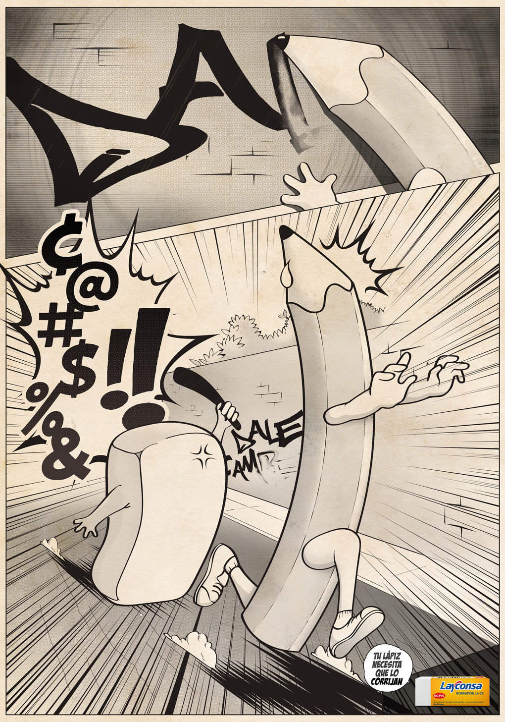 Ластик-полицейский против карандаша-хулиганаMayo Draft FCB продолжает рекламировать канцелярские принадлежности LayconsaSostav.ru ранее писал о рекламе маркеров и корректирующей ручки Layconsa от перуанского агентства Mayo Draft FCB. Новый принт серии посвящен ластику. Под девизом "Ваш карандаш должен быть исправлен" южноамериканские рекламисты изобразили стирательную резинку в образе полицейского, который преследует карандаша-нарушителя, разрисовавшего стены, и в образе строгого преподавателя, распекающего студента, исписавшего парту вместо тетради. Состав творческой группы Advertising Agency: Mayo Draft FCB, Peru Creative Directors: Ricardo Ortiz, German Garrido Art Directors: Mariano Escobal, Gabriel Capurro Copywriters: Jefferson Cortavarria, Juan Miguel Morales Illustrator: Gabriel Capurro |