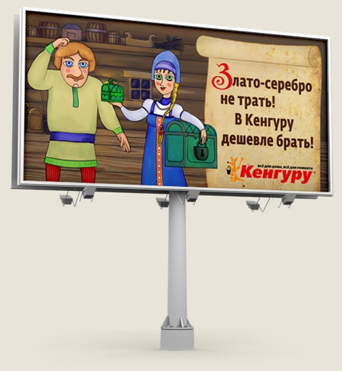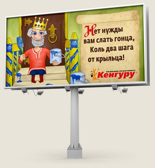 "Восход" для магазинов "Кенгуру" сделали сказочную наружкуВ агентстве креативных решений "Восход" разработали концепцию наружной рекламы для сети магазинов "Кенгуру", которая предлагает товары для дома и ремонта.Как пишут на своем сайте сами дизайнеры, клиенты поставили условия: "чтобы покупатели, увидев рекламу, стразу поняли, что магазины "Кенгуру" близко, не за тридевять земель, что цены там очень приятные, а выбор порадует всякого". Наружная реклама для "Кенгуру" скоро появится в Ивановской области.