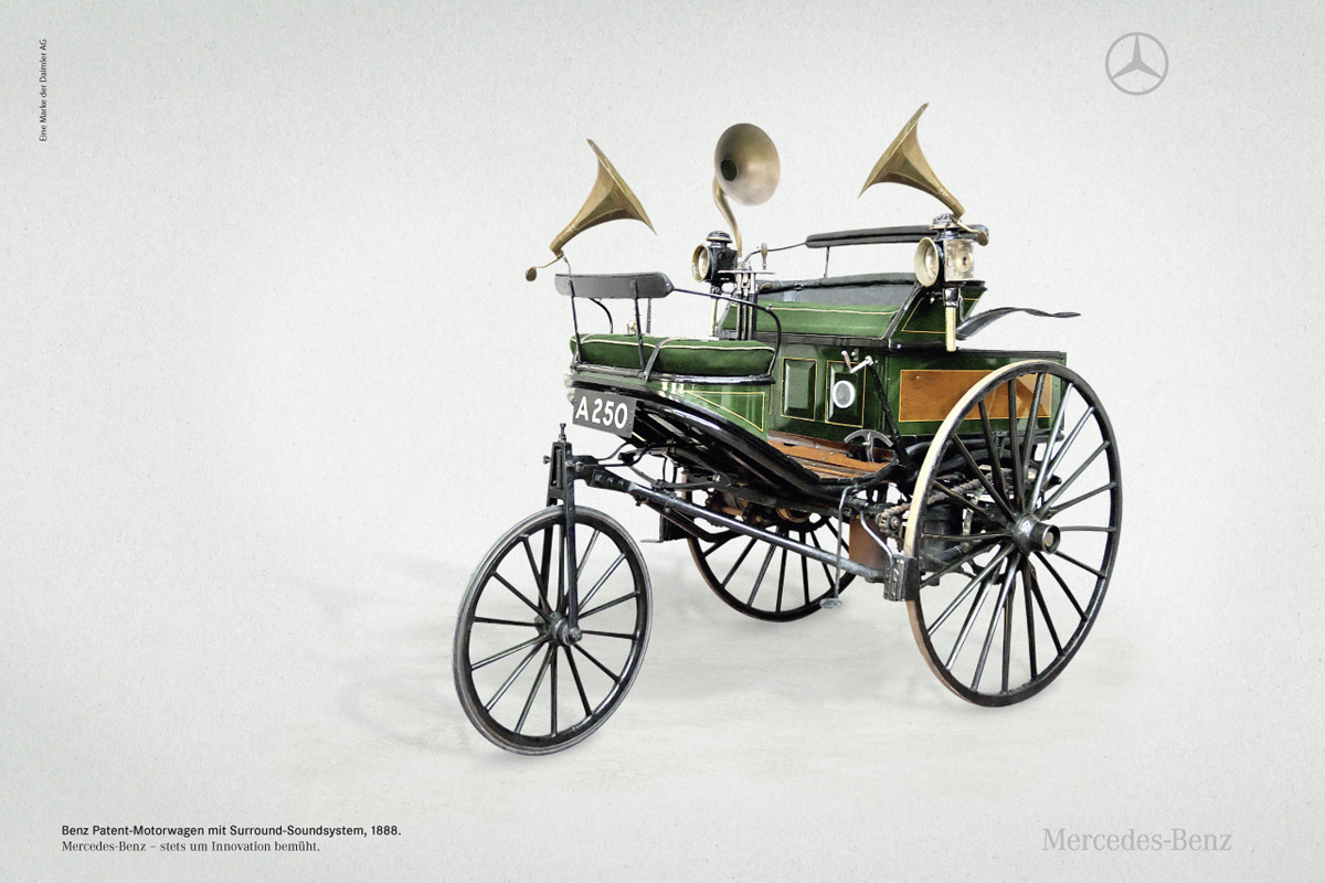 Mercedes представил инновации в ретро-стилеНовая рекламная кампания Mercedes-BenzАвстрийское агентство Jung von Matt/Donau создало печатную кампанию для автопроизводителя Mercedes-Benz. Новой кампанией Mercedes стремится продемонстрировать потребителям, что всегда находится в поиске инноваций, начиная от дня своего основания. Чтобы отразить историчность этого пути Mercedes-Benz креаторы изобразили ретро-автомобили с "наворотами", такими как аудиосистема, мощное освещение или дистроник - это система поддержания определенной дистанции между авто в потоке. Кампания проходит под девизом "Mercedes-Benz всегда в поиске инноваций" Состав творческой группы Advertising Agency: Jung von Matt/Donau, Vienna, Austria Creative Directors: Andreas Putz, Volkmar Weiss, Thomas Niederdorfer Art Director: Volkmar Weiss Copywriters: Thomas Niederdorfer, Christian Suntinger Graphic: Stefan Mayer |