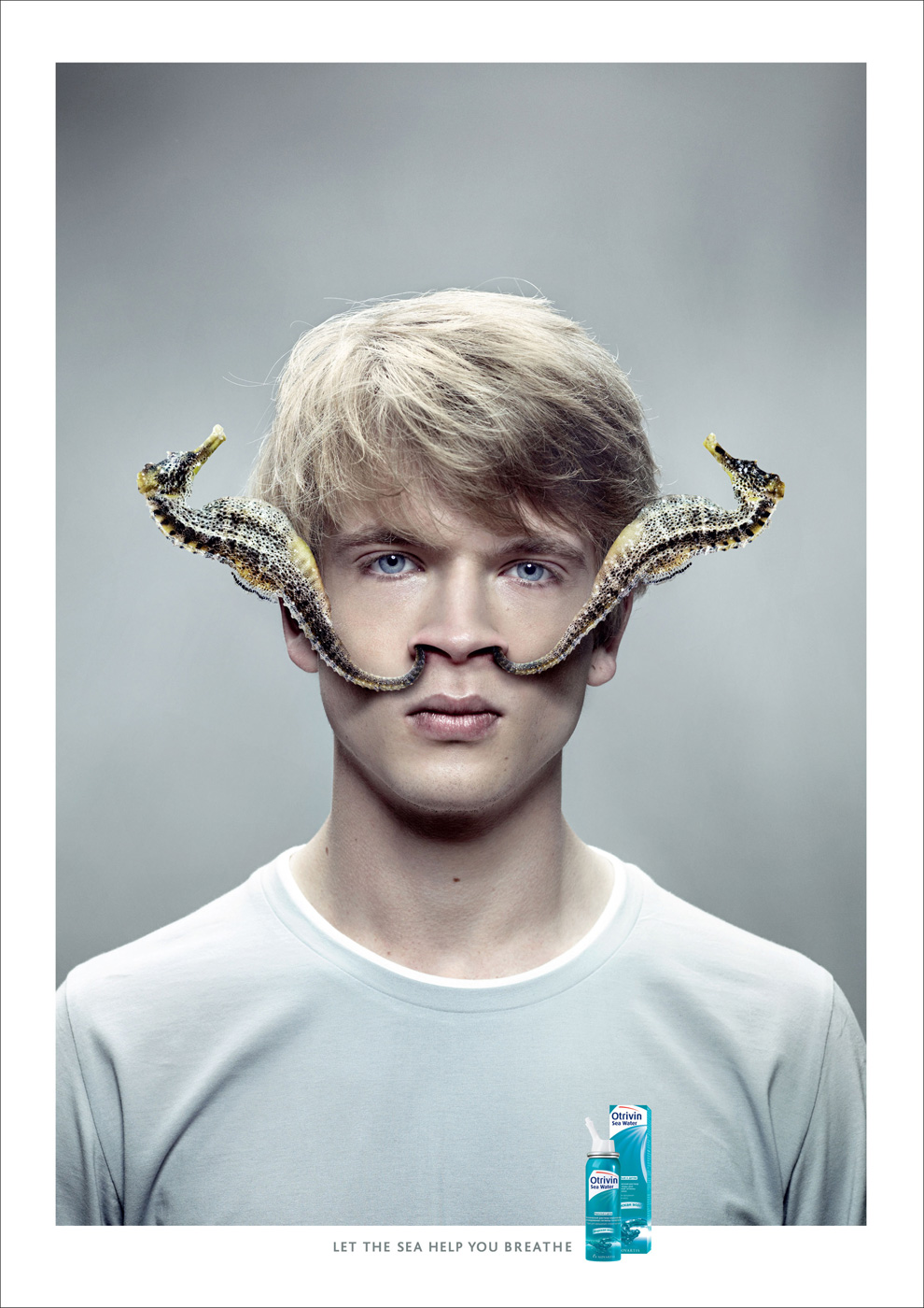 Otrivin призвал морских животных на помощь дыханиюРеклама средства от насморка с морской водойНовая печатная кампания популярного средства от заложенности носа Otrivin от агентства BBR Saatchi & Saatchi Tel Aviv / Switzerland. Реклама продвигает новую разновидность лекарства, в составе которого использована морская вода. Подчеркивая это, креаторы изобразили различных представителей морской фауны, которые буквально собственными щупальцами помогают людям дышать. Кампания проходит под слоганом "Пусть море поможет вашему дыханию". Ранее варшавское Saatchi & Saatchi в своей рекламе средства продемонстрировало, что Otrivin позволяет использовать нос для чего угодно: от надувания шариков, до игры на флейте. Состав творческой группы Advertising Agency: BBR Saatchi & Saatchi Tel Aviv / Switzerland |