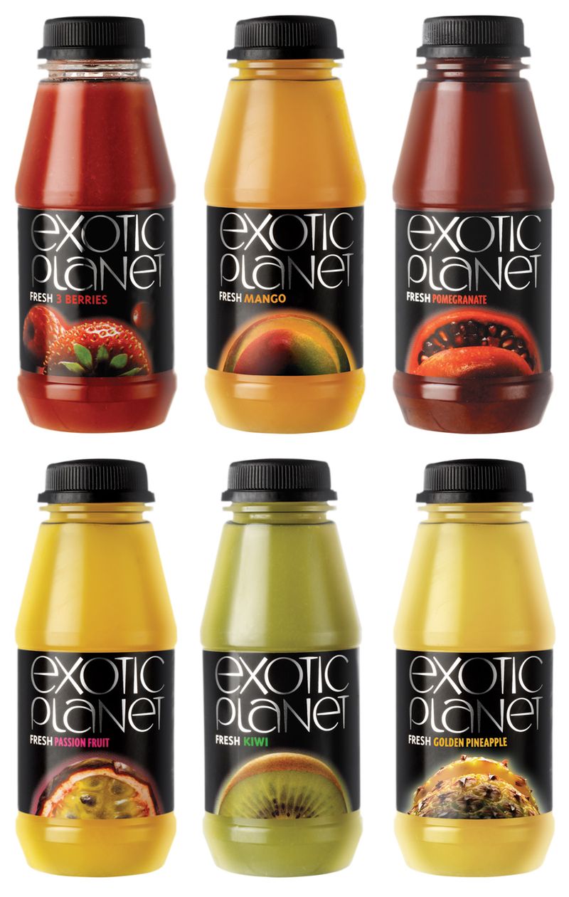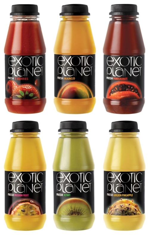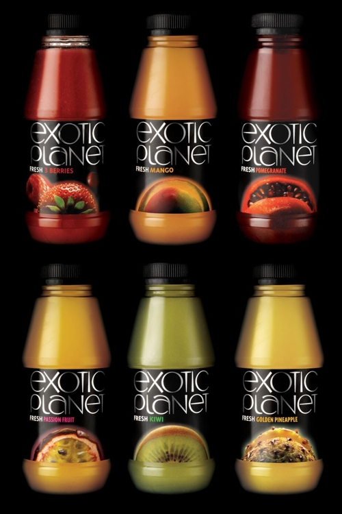 Экзотика планеты в новой упаковкеАгентство WonderlandWPA провело ребрендинг соков Exotic PlanetЛондонское брендинговое агентство WonderlandWPA провело ребрендинг соков Exotic Planet и сделало их упаковку более соответствующей названию. Перед агентством стояла задача разработать новый брендинг и дизайн упаковки, которые бы сделали бы соки Exotic Planet более элитарными и яркими. Для этого дизайнеры использовали серебристый текст для названия и похожие на планеты изображения фруктов, из которых сделан сок, расположив все на черном фоне. В результате ребрендинга, продажи сока выросли на 15% и бренд Exotic Planet стал пользоваться большей популярностью у потребителей. Было