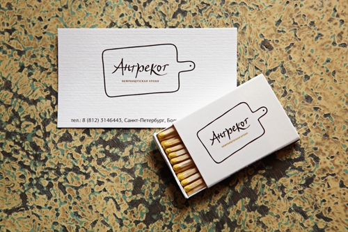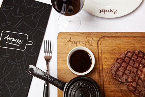 Айдентика ресторана "Антрекот" от Volga Volga Brand IdentityСпециалисты агентства Volga Volga Brand Identity разработали айдентику для нового ресторана группы "Пробка" - "Антрекот", расположившегося на Большой Морской улице, в центре Петербурга.Перед агентством была поставлена задача разработать лаконичный логотип и фирменный стиль, которые передают настроение нового проекта: демократичный ресторан современной кухни с талантливым шеф-поваром французом. Целевая аудитория - реализовавшие себя, молодые душой люди, которые ценят качество и непринужденную обстановку. Решением задачи стало использование в логотипе аттрибута всех мясных блюд - доски для резки. Именно на доске гостям приносят антрекот, который дал название ресторану. Разработанный фирменный стиль призван транслировать изысканную простоту и уютную атмосферу "Антрекота". Состав творческой группы Ресторанная группа "Пробка": Наталья Аверьянова - управляющая ресторана "Антрекот". Volga Volga Brand Identity: Наталья Белая - арт-директор, дизайнер-иллюстратор; Станислав Москаленский - рукводитель проекта.