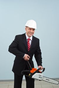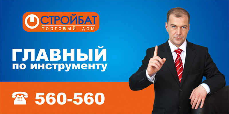 Торговый дом "Стройбат" начал в Кировской области свою рекламную кампанию. Телевидение, радио, наружка - в этом не было ничего необыкновенного, если бы не главный персонаж этой кампании. Со щитов и телеэкранов на кировчан смотрит мужчина в строгом костюме с красным галстуком и бензопилой в руках. И с первого взгляда его не отличишь от президента страны, пишет "Независимая газета".