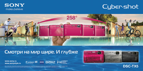 Dentsu-Smart продолжает рекламную кампанию Sony Cyber-shotВ апреле 2010 года агентство Dentsu-Smart выиграло тендер на проведение рекламной кампании для новой фотокамеры Sony Cyber-shot TX5.Новый Cyber-shot, сохранив свои самые миниатюрные размеры в мире фотокамер, теперь делает панорамные снимки даже с движущимися объектами, снимает в темноте и под водой, не боится падений и погружений, и готов превратить жизнь каждого в праздник. Этим особенностям модели и посвящена кампания, которая является логическим продолжением предыдущей. Тогда ее слоганом было: "Смотри на мир шире". Слоган летней кампании: Смотри на мир шире. И глубже. Ролик снимался в Ялте вместе с AC Production и Family Production. Состав творческой группы: Sony: Павел Рыженков (Руководитель Отдела Рекламы и PR) Руфат Табасаранский (Менеджер по продукту, Отдел маркетинга цифровой продукции) Марина Смирнова (специалист отдела Рекламы и PR) Dentsu-Smart: Михаил Ковалев (Креативный директор) Олег Паралюш (Руководитель отдела стратегического планирования) Катерина Ковалева (Заместитель креативного директора) Фирдинат Хакимянов (Продюсер) Юлия Иванова (Руководитель группы по работе с клиентами) Кирилл Диков (Арт-директор) Кирилл Тищенко (Копирайтер) Всеволод Лысенко (Продюсер) AC Production: Павел Лузин (режиссер) Роман Васьянов (оператор) Александр Жадан (фотограф) Дмитрий Шумилов (композитор) Илья Марьяхин (исполнительный продюсер) |