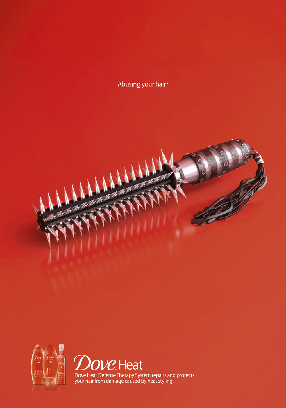 Не устраивайте пытку вашим волосамРеклама средств по уходу и для восстановления волос от DoveКреаторы McCann Erickson Tel Aviv выбрали для рекламы средств по уходу за волосами Dove интересный образ - расческу, превращенную в настоящее орудие пытки с острыми шипами и плетью. Задачей агентства было показать, что укладка так или иначе, но повреждает волосы. Поэтому необходимо использовать средства Dove из линейки Dove Heat Defense Therapy System, которые защищают и восстанавливают поврежденные волосы. Состав творческой группы Advertising Agency: McCann Erickson, Tel Aviv, Israel VP Creative: Eldad Weinberger Art Director: Maayan Froind Creative Director: Nir Levi Copywriters: Sahar Lewenstein, Daniel Zaks Account Management: Hanit Marinov, Yoni Friedman, Keren Moyal Illustrator: Studio Orso |