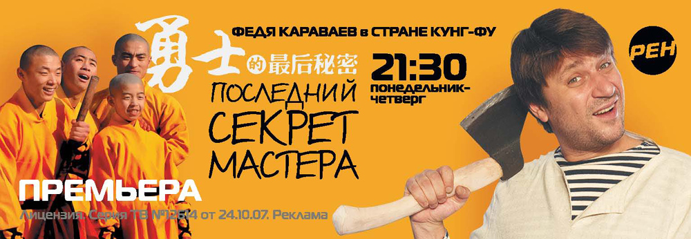 Первый русско-китайский проект стартует на канале РЕНВиктор Логинов изучил кунг-фу в сериале "Последний секрет мастера"На телеканале РЕН 14 июня стартует первый в истории российско-китайский телепроект "Последний секрет мастера", съемки которого заняли около 2,5 лет. В поддержку выхода в эфир многосерийного фильма запущена рекламная кампания, ядром которой стали крупнейшие телегиды России и печатные издания с телепрограммой, а также подключен ресурс масштабного эфирного анонсирования телеканала РЕН. В основе фильма лежит история о деревенском парне Федоре Караваеве (его роль сыграл Виктор Логинов, известный по ситкому "Счастливы вместе"). который отправляется в Китай воплощать свою мечту детства - изучать премудрости кунг-фу. Приключенческая сага, главными создателями которой стали известный документалист Игорь Прокопенко и китайский режиссер Ю Сяоган, будет полна разнообразных курьезов, любовных историй и ярких поединков. Съемки телепроекта проходили в Китае, Франции и России, а сложнейшие трюки и сцены драк в картине ставил личный постановщик трюков Джеки Чана мастер Юань Бинь. По признанию Виктора Логинова, китайцы - "это совершенно другая планета: начиная от общечеловеческих законов до принципов теле- киноиндустрии". К тому же, убеждает актер, китайцы помешаны на экономии, "они экономят всё - воду, свет, абсолютно всё"! Они умеют считать. Может быть, в этом секрет успеха китайской экономики?". А Геннадий Венгеров (играет главного мафиози по кличке "Царь") заявляет, что богатство русского мата меркнет по сравнению с китайским. Он выучил более 50% самых крепких выражений и на последнем фуршете, китайцы даже просили Венгерова под аплодисменты повторить несколько из них. В поддержку старта телепроекта запущена рекламная кампания, основу которой составили коммерческие размещения (в том числе спецпроекты) в еженедельниках федерального распространения: "Антенна Телесемь", "Теленеделя", "Мк Бульвар", "ТВ Парк", "Комсомольская Правда" (толстушка), Time Out. Объем маркетингового бюджета, равно как и бюджета всего телепроекта стороны не раскрывают. "Последний секрет мастера" недавно показывался в Китае на центральном канале CCTV-1 в прайм-тайм и пользовался большим успехом у китайских телезрителей. Главная газета Китая "Жэньминь Жибао" назвала картину "настоящим прорывом", а агентство China News - "Историей с большой буквы". Премьера фильма в России состоится 14 июня в 21.30 на телеканале РЕН. В этот день зрители смогут увидеть сразу две серии фильма. |