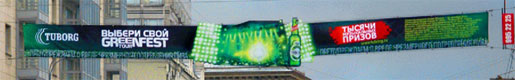Tuborg: фестиваль на перетяжкахПо заказу агентства Optimum Media OMD Group DaVinci для бренда Tuborg (клиент ОАО "Пивоваренная компания "Балтика") Московская Городская Реклама изготовила и разместила 14 нестандартных перетяжек.Их особенность заключается в использовании выносных пластиковых экстендеров, достигающих в длину 4 метров. Кампания приурочена к национальной промо-акции Tuborg Greenfest. Размещение проходит с 11 по 20 июня на Садовом кольце и основных магистралях города. |