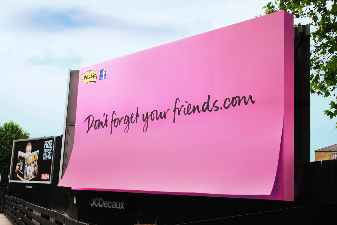 30-летие бренда отпраздновали гигантскими листками для напоминанийРеклама Post-it Note напоминает, что друзья - это самое важное в жизни30 лет назад компания 3M создала особые блокноты Post-it, с клейкими листками, которыми все мы теперь пользуемся едва ли не каждый день. Чтобы отметить день рождение этого знакового бренда агентство Profero London создало для компании небольшую онлайновую игру на Facebook, которая ставит своей целью напомнить людям, что друзья - это одно из самых важных в жизни человека. Дополнительно была создана наружная реклама в виде огромных листков с напоминанием не забывать друзей, которое в свою очередь, и является адресом мини-сайта с игрой. Состав творческой группы Advertising Agency: Profero London, UK Executive Creative Director: Elspeth Lynn Head of Art: Paul Hogarth Art Director: Warren Frost Copy Writer: Dave Newbold Designers: Callum Loftus, Hayden Peek Typographer: Alison Carmichael Production Company: B-Reel |
