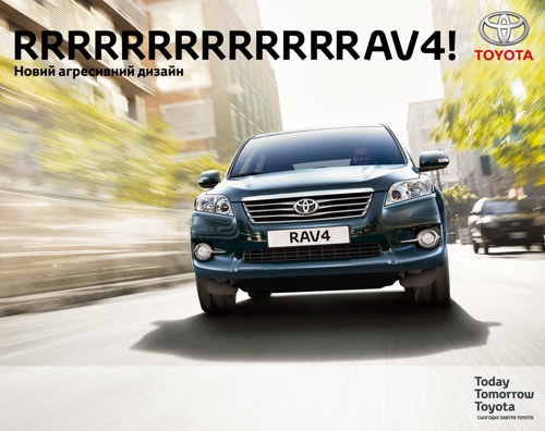 Копирайт из одной буквыНовая рекламная кампания Sahar для агрессивного кроссовера RRRAV 4 от TOYOTAВ июне 2010 года новый Toyota RAV4 поступил в продажу в официальной дилерской сети ПИИ "Тойота-Украина". С учетом пожеланий мужской аудитории кроссовер приобрел более агрессивный внешний дизайн и спортивный интерьер. Креативная команда Sahar: "Хороший копирайт может состоять из одной буквы - только, как подсказывает арт-директор, очень красивой буквы". Креативная команда Sahar: Креативный директор: Александр Родионов Арт-директор: Тимур Каримов Копирайтер: Андрей Латанский Менеджер проекта: Надежда Чумак |