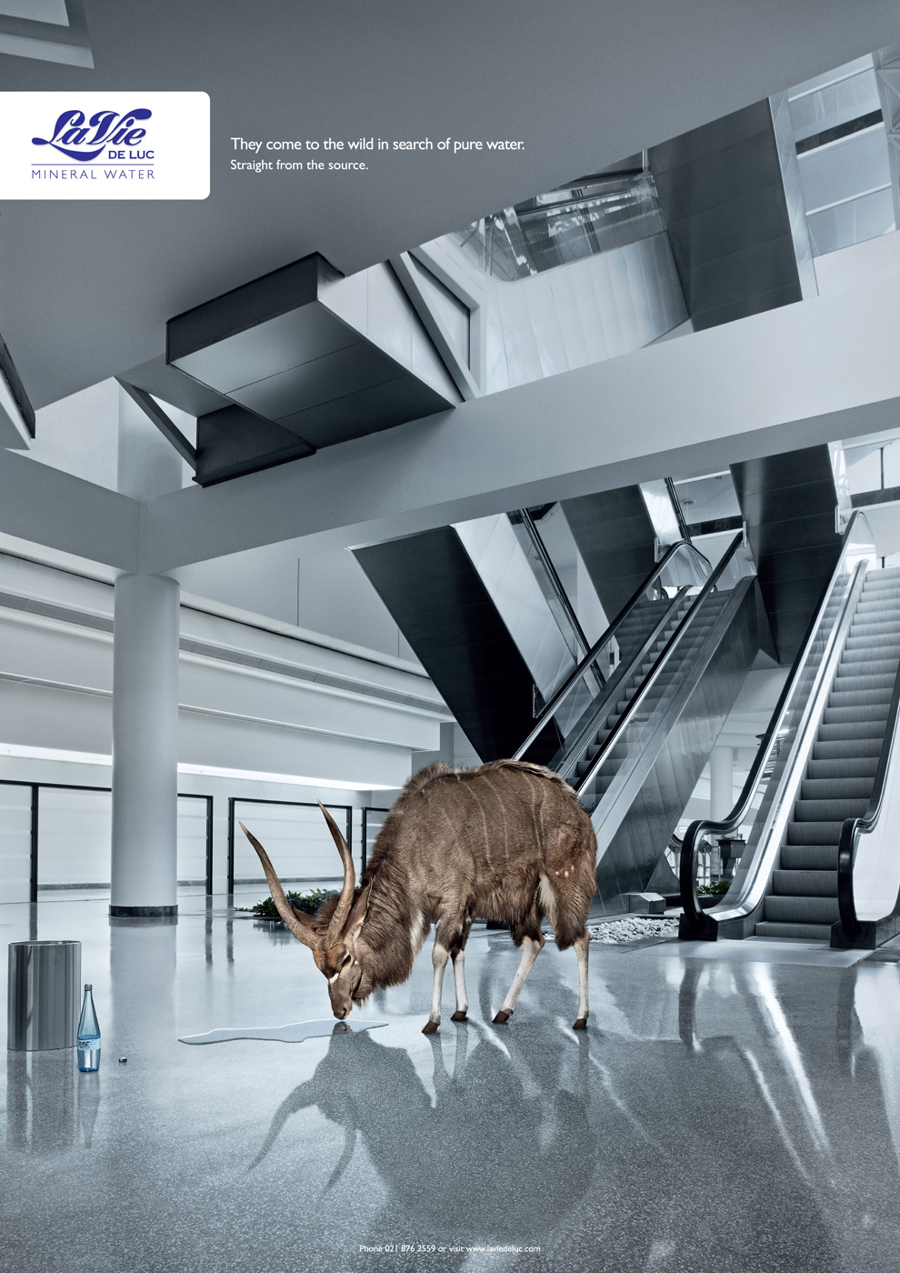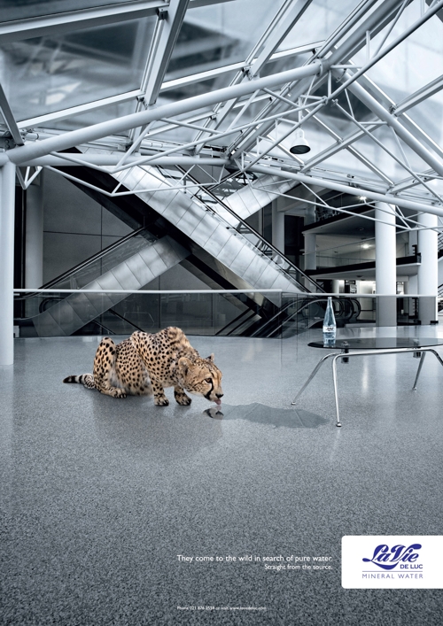 Даже дикие звери предпочитают воду La Vie De LucРеклама минеральной воды помещает африканских зверей в урбанистический антуражМинеральная вода La Vie De Luc - это настоящая природная вода, которая добывается из источника в горах рядом с Кейптауном. Местное рекламное агентство Fishgate Advertising, чтобы подчеркнуть натуральность воды изобразило обитателей дикой природы, которые пришли в город только для того, чтобы попить воды La Vie De Luc. При интересной идее, антураж принтов довольно беден и пуст - из-за этого реклама плохо воспринимается. Но натуральность минералки подчеркнута лучшим образом. Состав творческой группы Advertising Agency: Fishgate Advertising, South Africa, Cape Town Creative Director: Quintes Venter Art Director: Herman Venter Copywriter: Maria Berrios-Carter Illustrator: Jean van der Mescht Photographer: Justin Patrick Additional credits: Burger Grobler |