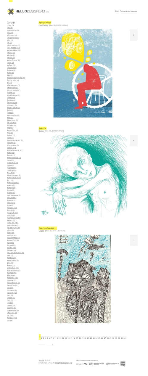 Hellodesigners.ru - ничего, кроме рисунковВ Рунете стартовал необычный дизайнерский проект HELLODESIGNERS.RU, особенность которого - отсутствие любого контента, кроме графического. Несмотря на такую лаконичность, проект уже объединяет более 170 дизайнеров, графиков и иллюстраторов, выкладывающих свои изображения на сайте.Пользователи сервиса, отобранные модераторами, могут публиковать в ленте свои работы. Если посетителю нравится изображение, он ставит плюс. Возможность поставить минус, оставить комментарий или еще как-либо выразить свое мнение - отсутствует и, скорее всего, будет отсутствовать. Единственное изменение, которое планируется ввести на сервисе - создание рейтинга авторов или работ. Автор проекта - арт-директор Максим Мезенцев - планирует объединить на HELLODESIGNERS.RU российских дизайнеров, графиков и иллюстраторов, которые будут выкладывать на сервисе свои работы, созданные для души. Как считает Максим, это позволит оценивать общий уровень развития российского дизайна, собирать команды близких по духу дизайнеров, замечать молодых перспективных дизайнеров. HELLODESIGNERS.RU позиционируется не только как площадка для профессионалов. Проект будет интересен и тем пользователям, которые просто ищут вдохновение или хотят окунуться в мир творческих людей. |
