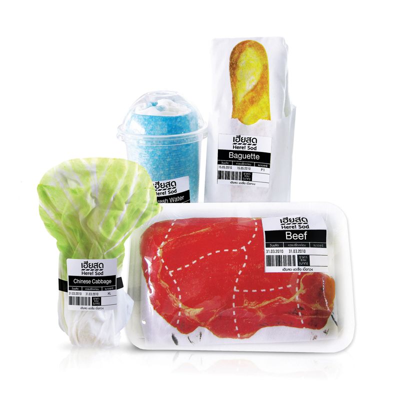 Футболки в виде едыУпаковка футболок от агентства Prompt DesignТаиландское агентство Prompt Design разработало любопытный дизайн упаковки футболок Here! Sod, который пародирует упаковку продуктов в супермаркетах. Каждая футболка упакована так, чтобы напоминать тот или иной продукт: мясо, хлеб, салат или прохладительный напиток. При этом футболки должны и продаваться в тех разделах, под продукты которых они "маскируются". Проект создан для того, чтобы привлечь внимание к бренду и повысить его узнаваемость, за счет слухов и вирусного эффекта. |