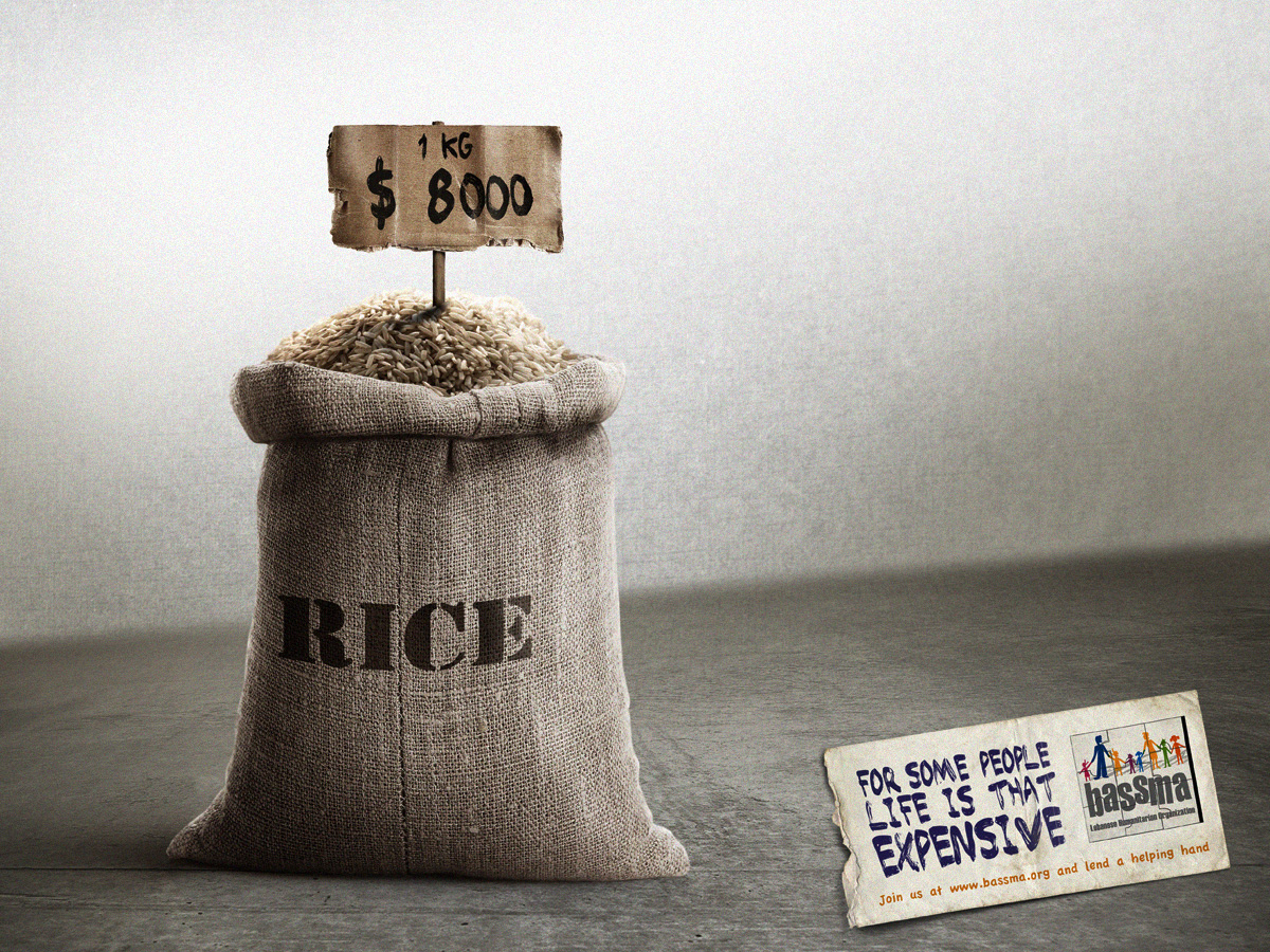 В социальной рекламе изобразили мыло за 9000 долларовГуманитарная организация BASSMA призывает помочь нуждающимсяЛиванская благотворительная организация BASSMA и агентство Impact BBDO разработали печатную кампанию по привлечению сторонников и активистов. В центре кампании изображение таких простых веще как рис и мыло - предметов повседневного спроса и самой бюджетной пищи, на которые навешены запредельно высокие ценники. Таким образом креаторы обращают внимание, на то, что далеко не для всех людей в мире добыть столь доступные с точки зрения благополучных людей вещи оказывается просто. "Для некоторых людей жизнь настолько дорога. Присоединяйтесь к нам на www.bassma.org и протяните руку помощи", - сообщают плакаты. Состав творческой группы Advertising Agency: Impact BBDO, Beirut, Lebanon Executive Creative Director: Walid Kanaan Art Director: Georges Kyrillos Copywriter: Marie-Noelle de Chadarevian |