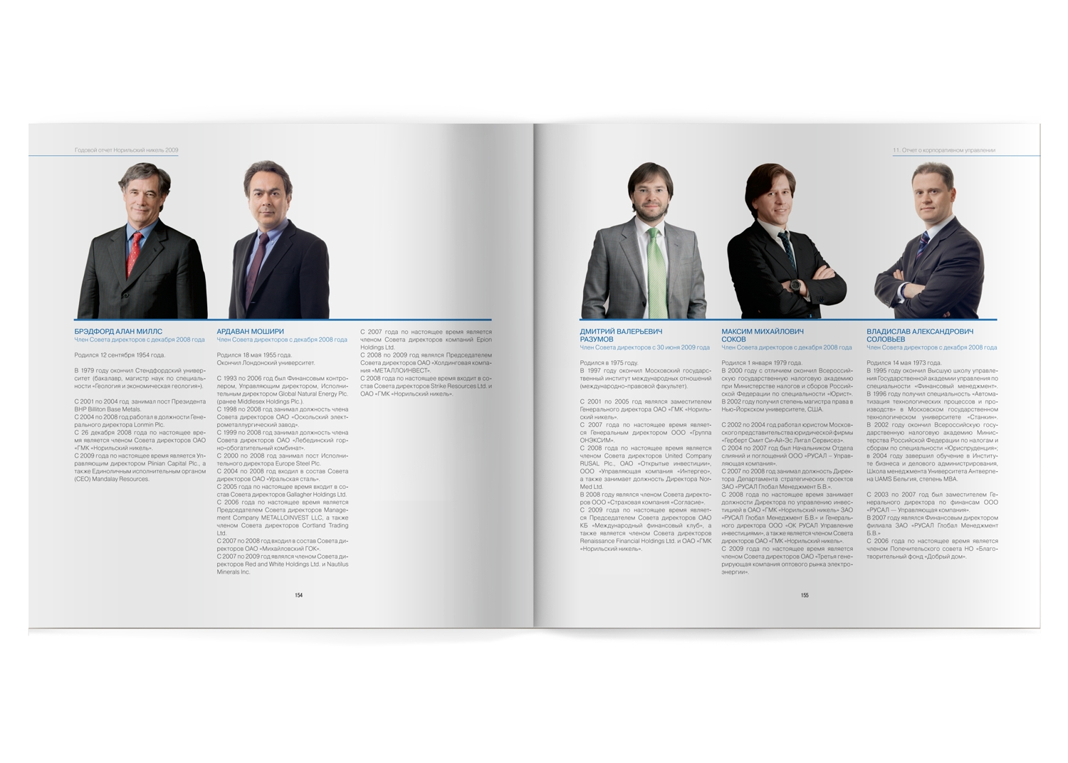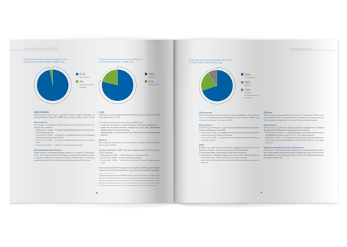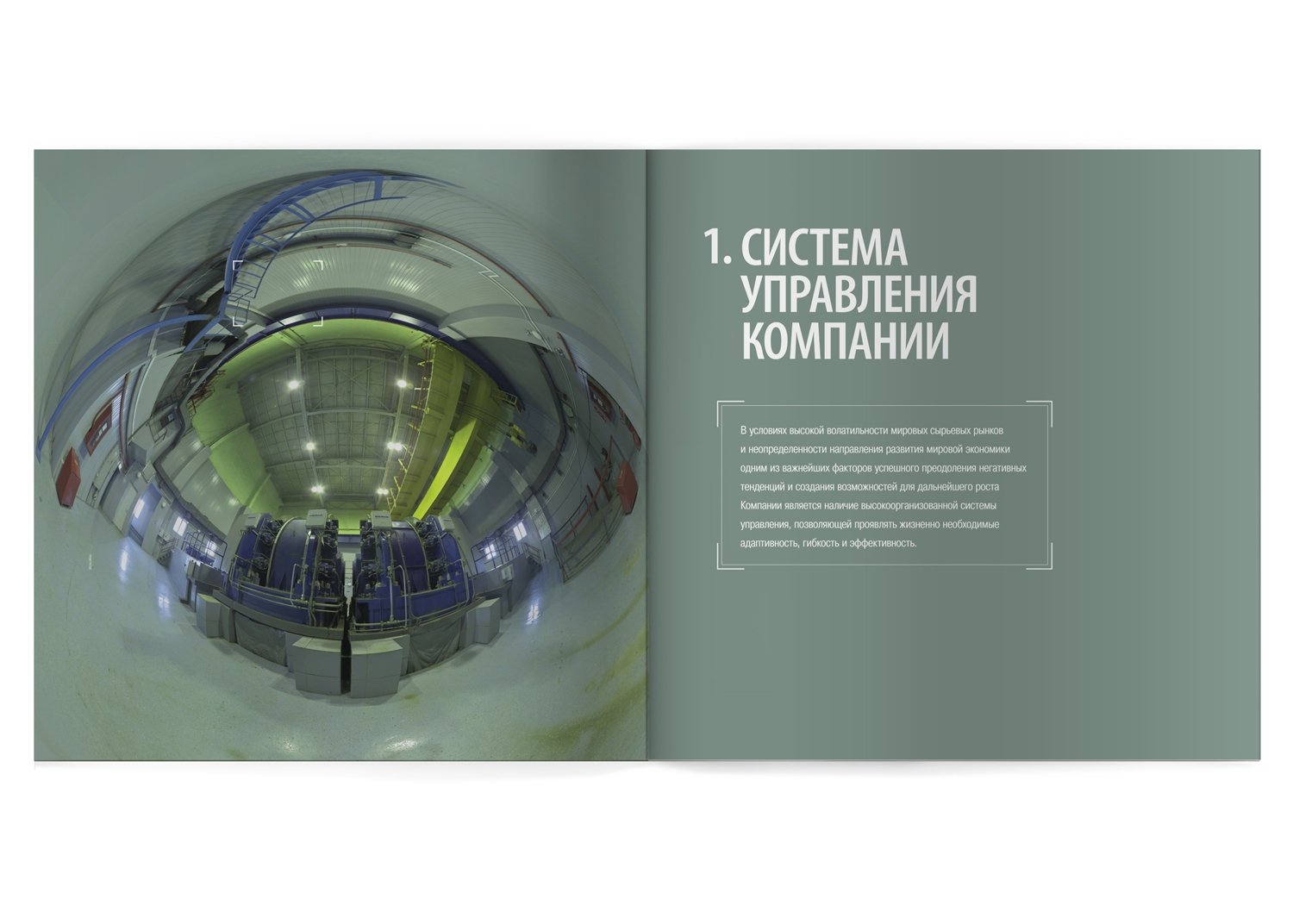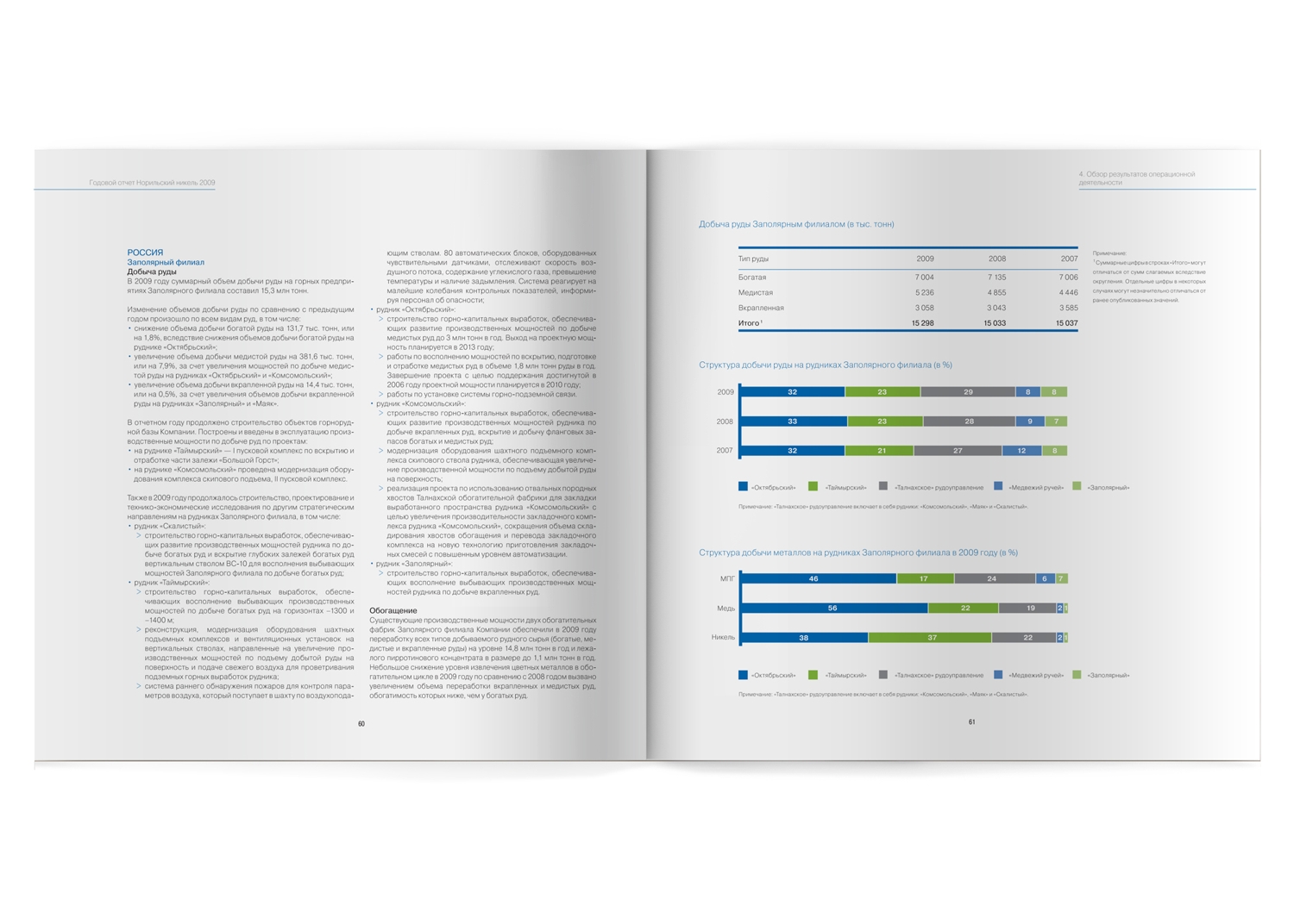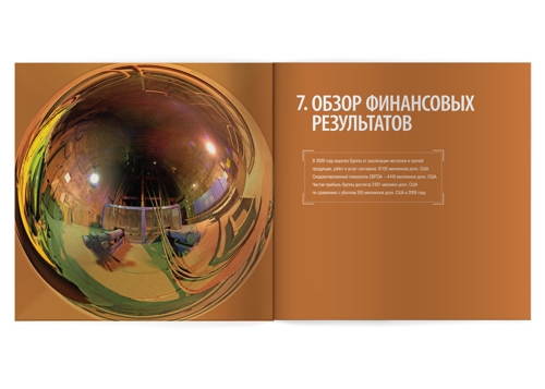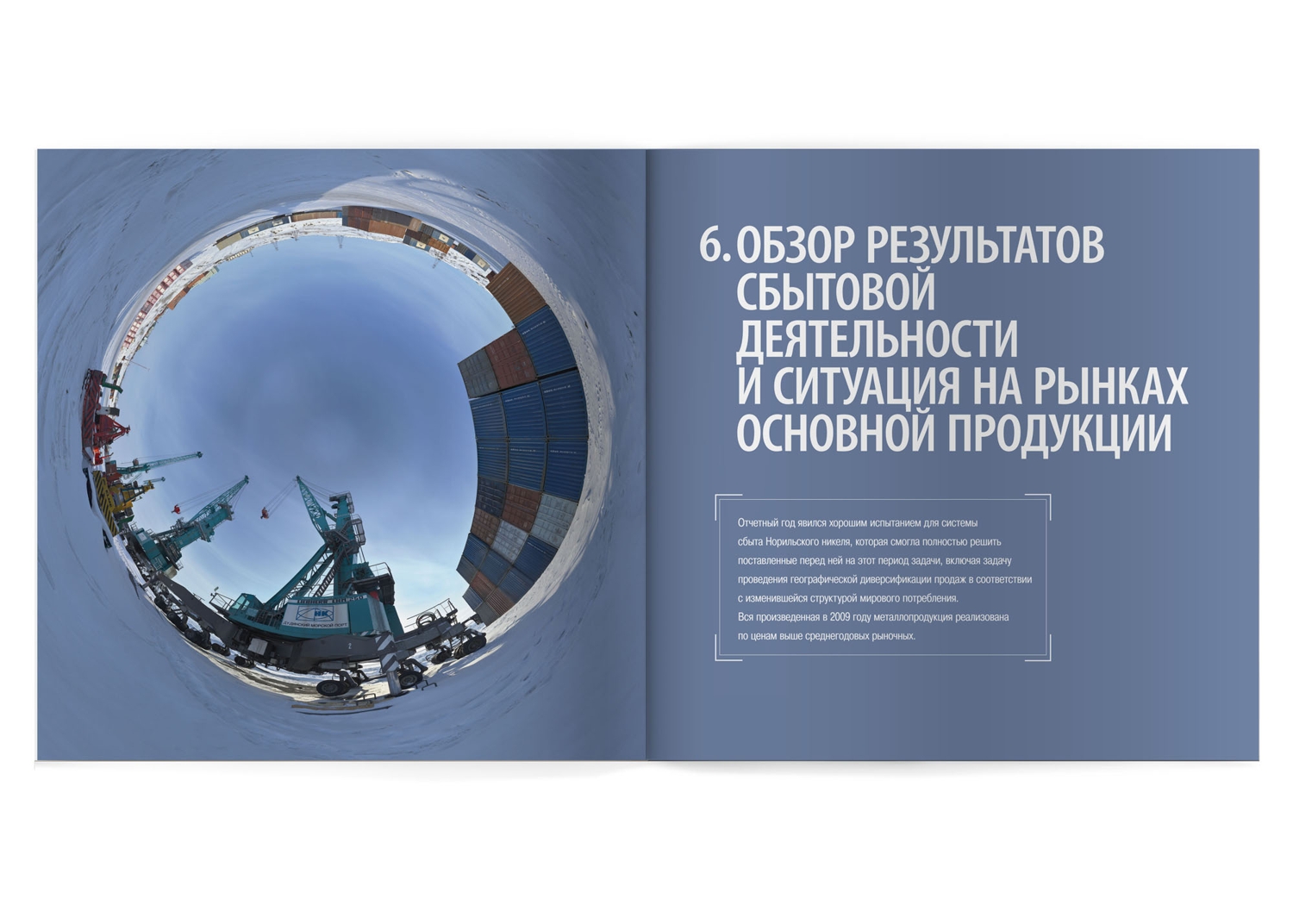 Годовой отчет ГМК "Норильский никель" - фокус на эффективностьОсновная идея - пристальное внимание менеджмента на повышение эффективности деятельности российских предприятий, сокращение издержек и продолжение модернизации производственных активов.Годовой отчет сделан лаконично и современно. Верстка без лишних декоративных элементов, а только необходимыми средствами дает ощущение легкости и стабильности. В качестве иллюстраций широкого спектра направлени деятельности "Норильского никеля" на шмуцтитулах использованы фотографии с эффектом сферической панорамы. Так же вынесена основная основная мысль раздела. "Энди_Зайн" благодарит "Норильский никель" за предоставленную возможность творить! |