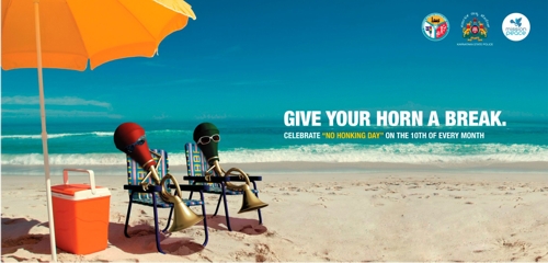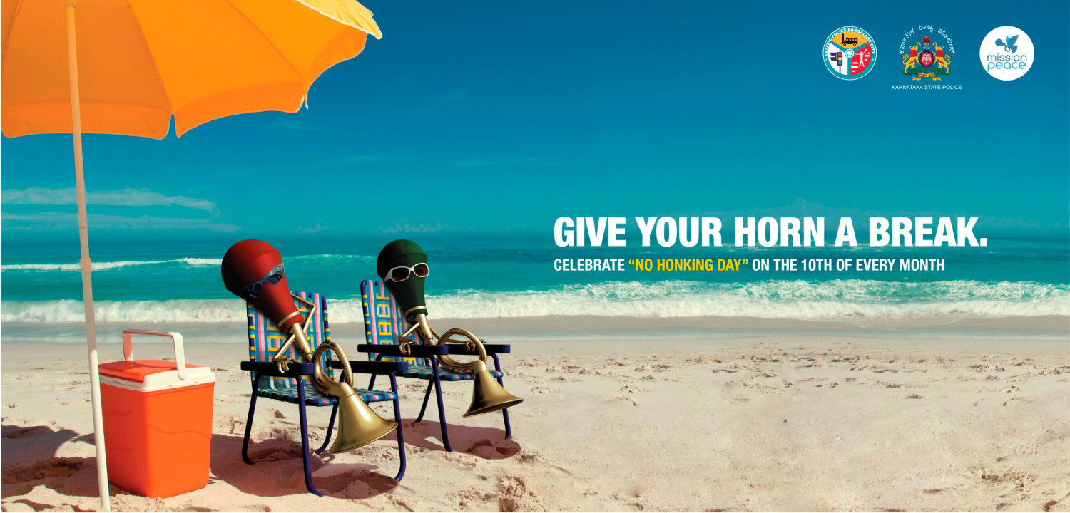Индийцев призывают не сигналить хотя бы один день в месяцКампания пропаганды ежемесячного Дня без автомобильнгого гудкаДорожная полиция Бангалора, управление полиции штата Карнататка и общественная организация Mission Peace проводят рекламную акцию в целях пропаганды Дня без автомобильных гудков или No Honking Day, который назанчен на 10 число каждого месяца. Такой день решено учредить из-за того, что в Индии довольно плотное дорожное движение и каждый водитель полагает постоянное использование автосигнала непреложным атрибутом вождения. Поскольку уровень шума из-за этого в буквальном смысле запредельный, то и возникла необходимость хоть как-то повлиять на автомобилистов. Креаторы призывают дать гудку отдохнуть и используют соответствующие этому релаксационному призыву принты. Впрочем, очень сомнительно, что кампания возымеет действие. Состав творческой группы Advertising Agency: Bushtail, Bangalore, India Creative Directors: Shikha Gupta, Jeevan Sebastian Art Director: Deepak Dev 3D Illustrators: Praveen Kumar, Naveen Kumar, Rajeev B. Additional credits: Pritpal Singh, Mohammed Azhar |