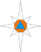 Основным символом министерства РФ по чрезвычайным ситуациям является Белая Звезда Надежды и Спасения, на базе которой разработана эмблема МЧС России, представляющая собой вытянутый по вертикали восьмиугольник, в центре которого расположен международный отличительный знак гражданской обороны - голубой треугольник в круге оранжевого цвета. |