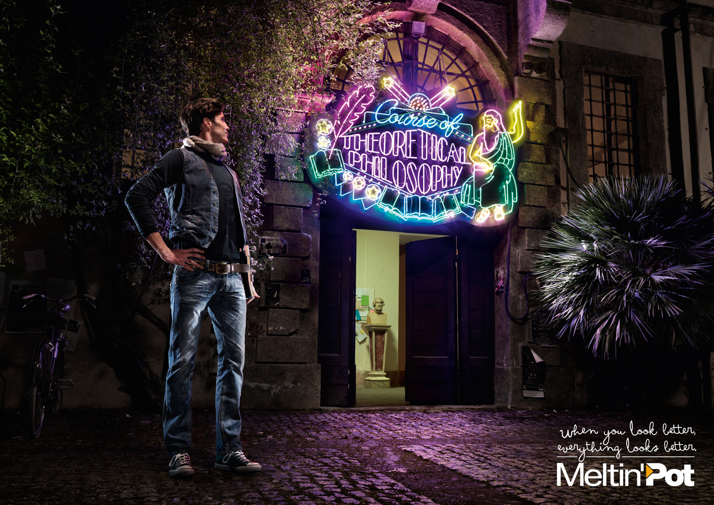 Джинсы Meltin'Pot продолжают улучшать мирНовая кампания итальянского бренда утверждает, что все по силам, когда ты в джинсах Meltin'PotArmando Testa Milano разработало новую рекламную кампанию марки джинсов Meltin'Pot. В последний раз, креаторы обыгрывали революционные плакаты, но на этот раз вернулись к традиционной и более успешной теме улучшения реальности и воплощения фантазий мужчин. Ранее агентство убеждало потребителя, что с Meltin'Pot жизнь превратится в захватывающее сексуальное приключение, можно будет победить смерть или стать персонажем сказки. На этот раз Armando Testa Milano обыгрывает то, что бренд придает уверенности в себе и любая задача оказывается проще, будь то встреча с родителями девушки или же изучение сложной науки, а неприятности вроде соседа, играющего на скрипке - становятся сущей ерундой. "Когда ты выглядишь лучше, все выглядит лучше", - сообщает слоган. Состав творческой группы Advertising Agency: Armando Testa Milano, Italy Creative Director: Michele Mariani Deputy Creative Directors: Luca Cortesini, Lorenzo Crespi Art Director: Laura Sironi Copywriter: Maria Meioli Photographer: Lorenzo Vitturi |