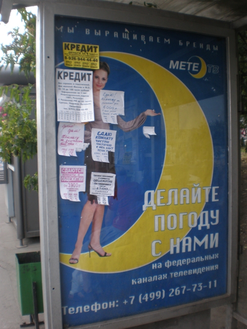 Реклама в метеопрогнозах обрела новый медианосительВ Москве появилась наружная реклама телекомпании "Метео-ТВ". Ее яркой особенностью является то, что кампания продвигает не сами прогнозы погода, а возможность размещения рекламы в них. Прежде такие услуги предлагались только посредством титров в конце передач. Так что можно сказать, что "погодную" рекламу стали продавать с помощью нового медианосителя.Креатив коммуникации разработан в агентстве полного цикла ТМК ("Трансконтинентальная МедиаКомпания"), которое входит в одноименную медиагруппу. Телекомпания "Метео-ТВ" готовит передачи "Прогноз погоды" для нескольких телеканалов, включая центральные: "Первый", "Россию", НТВ, ТВ Центр. Как рассказывается на сайте рекламного агентства, выпуски "Прогноза погоды" ежедневно выходят в эфир более 60 раз. Дизайн программ постоянно обновляется оригинальной компьютерной графикой , которая соответствует стилистике каждого канала. По мнению креаторов, для рекламодателей прогноз погоды интересен тем, что разместив в рамках выпуска спонсорские проекты, можно получить массу преимуществ: ведь, как правило, выпуски "Прогноза погоды" транслируются в заключение информационных программ, которые имеют максимально высокие рейтинги. Эта концепция выдержана в макетах наружной рекламы, ее слоганы "Делайте погоду с нами" и "Мы выращиваем бренды". Лицами кампании стали девушки - ведущие прогнозов погоды на разных телеканалах. Татьяна Полякова, Sostav.ru Фото Елены Цоколовой, Sostav.ru |