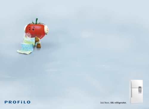 Холодильник, в котором еда может потерятьсяРеклама 566-литрового холодильника ProfiloЧтобы прорекламитровать чрезвычайно вместительный холодильник бренда Profilo, турецкое агентство Rafineri превратило фрукты и овощи в затерявшихся туристов и исследователей мира. С помощью отличных образов минималистичного фона великолепно сумели передать то, что холодильник действительно очень большой. Чего стоит одно только растерянное выражение лица-человечка-помидора, который сокрушенно изучает карту. Все сделано так выразительно, что пояснение о размерах холодильника выглядит едва ли не лишним. Состав творческой группы Advertising Agency: Rafineri, Istanbul, Turkey Creative Directors: Ayse Bali, Murat Cetinturk Art Director: Can Guven Copywriter: Gorkem Yegin Illustrator: Lighthouse |