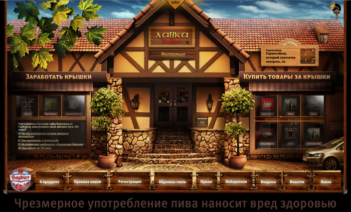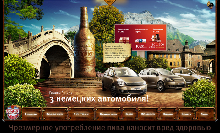 BagBier построил BierBaden на немецком доменеЭтим летом по всей России стартовала промоакция "Немецкое качество под каждой крышкой" от пивного бренда BagBier. В рамках промо BagBier предлагает не просто насладиться изумительным вкусом пива, но и получить заряд эмоций и впечатлений.Участникам акции предлагается собирать и регистрировать крышки, ценность которых измеряется в реальных призах. Выиграть один из трех немецких автомобилей - с Bagbier это стало возможно! Помимо главного приза, ежедневно разыгрываются денежные призы - от 50 до 200 рублей на мобильный телефон, еженедельно 10 000 рублей и ежемесячно 100 000 рублей. Акция продлится до 30 сентября. В рамках акции "Немецкое качество под каждой крышкой" агентством Pichesky Digital совместно с Сан Инбев был запущен промосайт bagbier.de. Креативная концепция сайта, как и всего промо, основывается на виртуальном немецком городке BierBaden, полноправным жителем которого может стать любой зарегистрировавшийся пользователь. Благодаря выдержанному дизайну, передовым технологиям в разработке и фирменному музыкальному сопровождению, на сайте удалось воссоздать атмосферу уютного немецкого города и наполнить его увлекательными online-активностями. Как и в реальном мире, в BierBaden есть своя внутренняя валюта - "крышки Багбир". Именно их предлагается активно зарабатывать, а потом также активно тратить жителям этого уютного города. Способов обогатиться предоставляется множество: в частности - от честно заработанных в разделе "Лавка" (викторина и игры от BagBier) до "легких" бонусных крышечек, спрятанных по всему промосайту. Обменять крышечки на разнообразые призы (как интерактивные, так и реальные) можно в разделе "Купить товары за крышки". Например, с умом потратить накопленное можно на виджет-часы - программу в виде старинных брендированных часов, которая будет оповещать о выигрынных призах вне зависимости находится ли пользователь на сайте или нет. Состав творческой группы: Клиент: Сан ИнБев Бренд-менеджер Bagbier: Анна Марчук Агентство: Pichesky Digital Креативная команда: Гумаров Александр, Костиков Кирилл, Крылов Владимир Арт-директор: Олег Малахов Технический директор: Иван Елизаров Менеджер: Евгения Закамская |