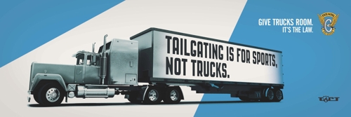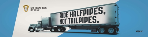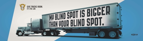 Денверское агентство Amèlie Company разработало три крупноформатных принта для наружки, которые предупреждают водителей об опасностях, связанных с ездой рядом с грузовиками и напоминают, что правила предписывают уступать им дорогу.