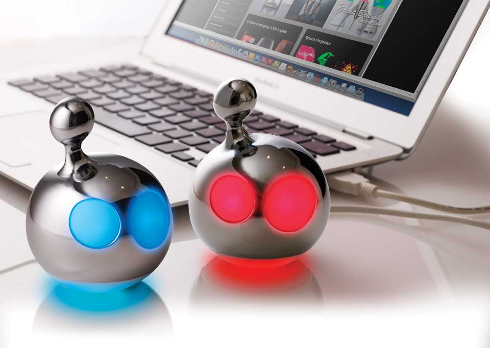 Первая из них - Blob & Flow. Прибор размером с апельсин реагирует на прикосновения подмигиванием и другими импульсами. Подключается к компьютеру. Он появится в магазинах в середине августа. Ожидаемая стоимость 2000-3000 рублей.