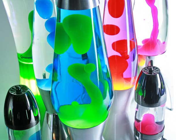 Светильник работает по довольно простой технологии. Это стеклянная емкость с прозрачным маслом и полупрозрачным парафином. Расположенная снизу лампочка нагревает и подсвечивает содержимое цилиндра, и под воздействием температуры парафин начинает перемещаться в масле.