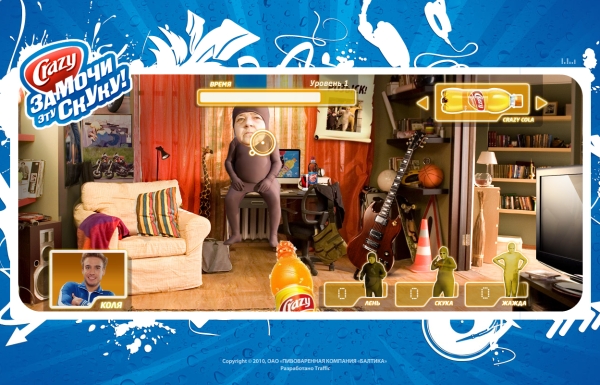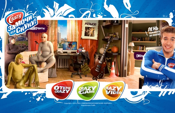 "Балтика" и TRAFFIC побороли СкукуАгентство интерактивных маркетинговых коммуникаций TRAFFIC разработало промо-сайт в поддержку торговой марки Crazy. Crazy - это безалкогольный газированный напиток, производителем которого является пивоваренная компания "Балтика".На страницах промо-сайта пользователи могут не только познакомиться с новым позитивным напитком, представленным тремя популярными вкусами - освежающий лимон, сочный апельсин и оригинальная кола, - но также вместе с отважным Crazy Колей сразиться с Ленью, Скукой и Жаждой. "Скука, Жажда и Лень часто, а в установившуюся этим летом жару особенно, стремятся стать постоянными спутниками человека и не дать ему двигаться дальше. Поэтому мы придумали, как в игровой манере побороть их с помощью виртуальных напитков Crazy. В реальной жизни останется лишь освежиться настоящими Crazy Cola, Crazy Orange или Crazy Lemon, - говорит креативный директор TRAFFIC Валерий Сивцев. - Кроме того, достаточно простая, но при этом увлекательная аркада позволяет бренду установить более тесную коммуникацию с потребителем". |