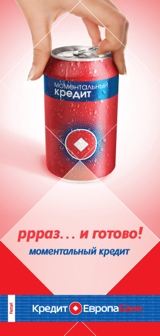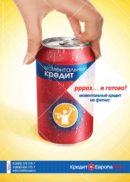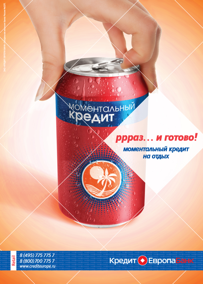 "Кредит Европа Банк" меняет рекламную концепциюВ середине августа на всех точках продаж "Кредит Европа Банка" появятся новые рекламные материалы, продвигающие моментальные кредиты. Новая концепция была разработана рекламным агентством Arena-Magic Box, а затем адаптирована и доработана дизайнерами креативного отдела Банка.Новые рекламные материалы были созданы на смену существующей концепции, главной мыслью которой было отображение моментальности кредита. Прежде материалы отличались излишней лаконичностью и выделялись лишь яркими цветами на фоне полиграфической продукции других банков. В новом брифе для Arena-Magic Box перед агентством стояла задача "показать присутствие "Кредит Европа Банка" в местах выдачи кредита, выделиться среди банков-конкурентов, привлечь ЦА с целью оформления кредита, при этом реклама должна быть яркой, привлекательной, и вместе с тем, самобытной и запоминающейся". В результате была выбрана летняя и современная идея, отражающая как простоту оформления кредита, так и скорость принятия решения - "Ррраз и готово…". Разработанная агентством концепция была взята за основу для всей линейки моментальных кредитов и адаптирована дизайнерами "Кредит Европа Банка" для различных предприятий торговли и сервиса, где выдается кредит. До конца лета новые рекламные материалы будут представлены внутренней рекламой в местах продаж в виде постеров, вобблеров, стикеров, домиков, флаеров, а также баннеров в Интернете. В начале осени новая концепция будет адаптироваться под новые форматы для проведения совместных рекламных кампаний с партнерами Банка в рамках программы потребительского кредитования. Состав творческой группы: "Кредит Европа Банк" Начальник креативного отдела - Ольга Аверьянова Дизайнер - Галина Мачехина Arena-Magic Box Account Director Екатерина Московская Senior Account manager - Ольга Хохлова дизайнер - Дмитрий Дугин арт-директор - Павел Нагаев копирайтер - Сергей Некрасов |