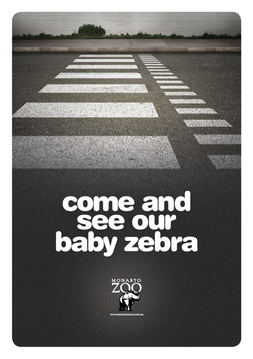 Пешеходной зеброй зовут поглядеть на живую зебруРеклама зоопарка Adelaide ZooВ июле в австралийском зоопарке Adelaide Zoo случилось радостное событие, одна из зебр родила жеребенка. Администрация зоопарка сразу же решила использовать это для привлечения большего количества посетителей. Для этого агентство Showpony разработало остроумный принт, на котором изображен пешеходный переход с подписью "Приходите взглянуть на нашу зебру-малютку". Состав творческой группы Advertising Agency: Showpony, Adelaide, Australia Creative Director: Paris Mesidis Art Director: Manuella Ortiz Copywriters: Parris Mesidis, Andrew Bensley |