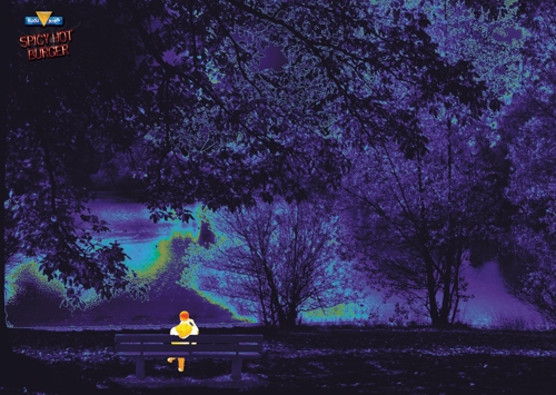 "Горячительные" бургеры KuduРеклама сети фаст-фуд-ресторанов Саудовской Аравии, славящихся остротой пищиАгентство Targets Leo Burnett создало серию принтов для рекламы острых бургеров сети ресторанов быстрого питания Kudu в Саудовской Аравии. Креаторы решили продемонстрировать остроту продукта с помощью прибора инфракрасного зрения. Среди холодного окружающего мира на принтах имеется только один объект, излучающий неимоверное тепло - это или человек, только что отведавший бургеров Kudu, или пакет с самими бургерами. Состав творческой группы Agency: Targets Leo Burnett, Saudi Arabia Executive Creative Director: Mehdi El Alj Art Director: Jonathan Horner Copywriter: Mehdi El Alj |