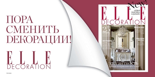 Elle decoration меняет декорацииОсенью 2010 года интерьерный журнал Elle decoration призывает сменить декорации. Журнал, ранее известный как ELLE Декор, появляется в новом виде. 1 сентября в поддержку первого обновленного номера стартует рекламная кампания.Алексей Дорожкин, главный редактор ELLE DECORATION рассказал, что в журнале обновилась обложка, улучшился дизайн журнала, в нем появилось больше рубрик, посвященных дизайну и оформлению интерьера. Слоган "Пора сменить декорации!" и основная идея рекламной кампании разработана творческой командой ELLE DECORATION. Рекламная кампания задействует сразу несколько каналов коммуникации: наружные носители в поддержку сентябрьского номера: щиты 3х6, призмаборды 3х6, мониторы; программу direct mail рассылок; PR поддержку; усиление поддержки издания на местах продаж; участие в тематических событиях в России и за рубежом. |
