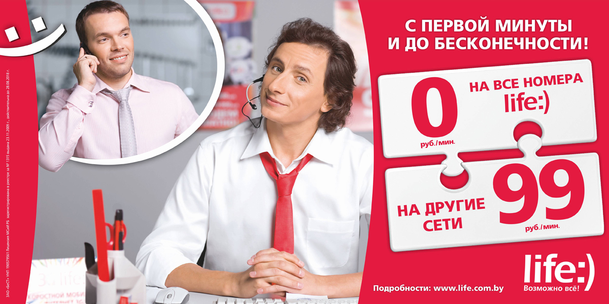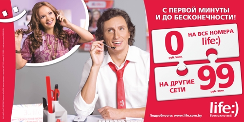 life:) рекламируют Вадим Галыгин и ТриджикМобильный оператор Беларуси life:) продолжает рекламные кампании в поддержку своих продуктов.Напомним, что лицом кампании для нового роуминг-тарифа стал Вадим Галыгин, до этого сотрудничающий с сетью магазинов "Эльдорадо". В новом ролике артист объясняет, как подключить тариф со своего мобильного телефона, восхищенной поклоннице. В другой коммуникации бренд-герой Триджик рассказывает о преимуществах высокоскоростного интернета 3G life:), который всегда можно взять с собой. В двадцатисекундном споте его герой жалуется, что Интернет-кафе встречаются далеко не везде. Но на помощь всегда придет 3G модем от life:). Состав творческих групп: ролик "Call-centr": life:) - Ната Любецкая, Нина Штрик Креативное агентство: MOLOTOV Фотограф: Юрий Федоренко Продакшн: Partizan / Режиссер: Андрей Гнет / Оператор: Евгений Ермоленко / Продюсер: Алексей Сатолин ролик "Триджик": life:) - Ната Любецкая, Нина Штрик Креативное агентство: MOLOTOV Фотограф: Евгений Грабкин Продакшн: Partizan / Режиссер: Андрей Гнет / Оператор: Вадим Потеев / Продюсер: Алексей Сатолин